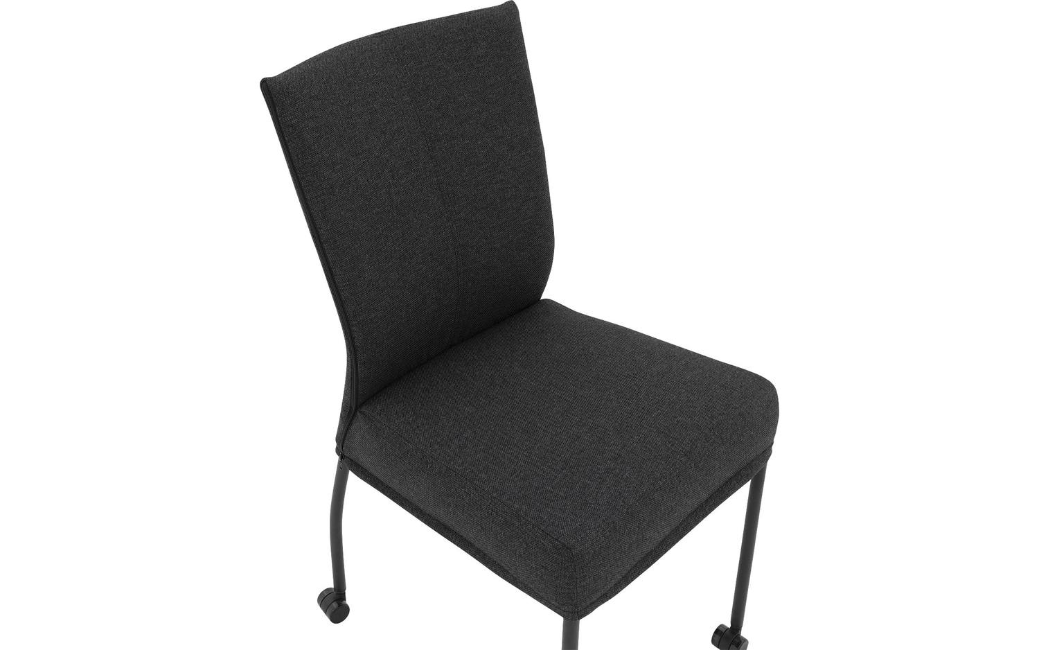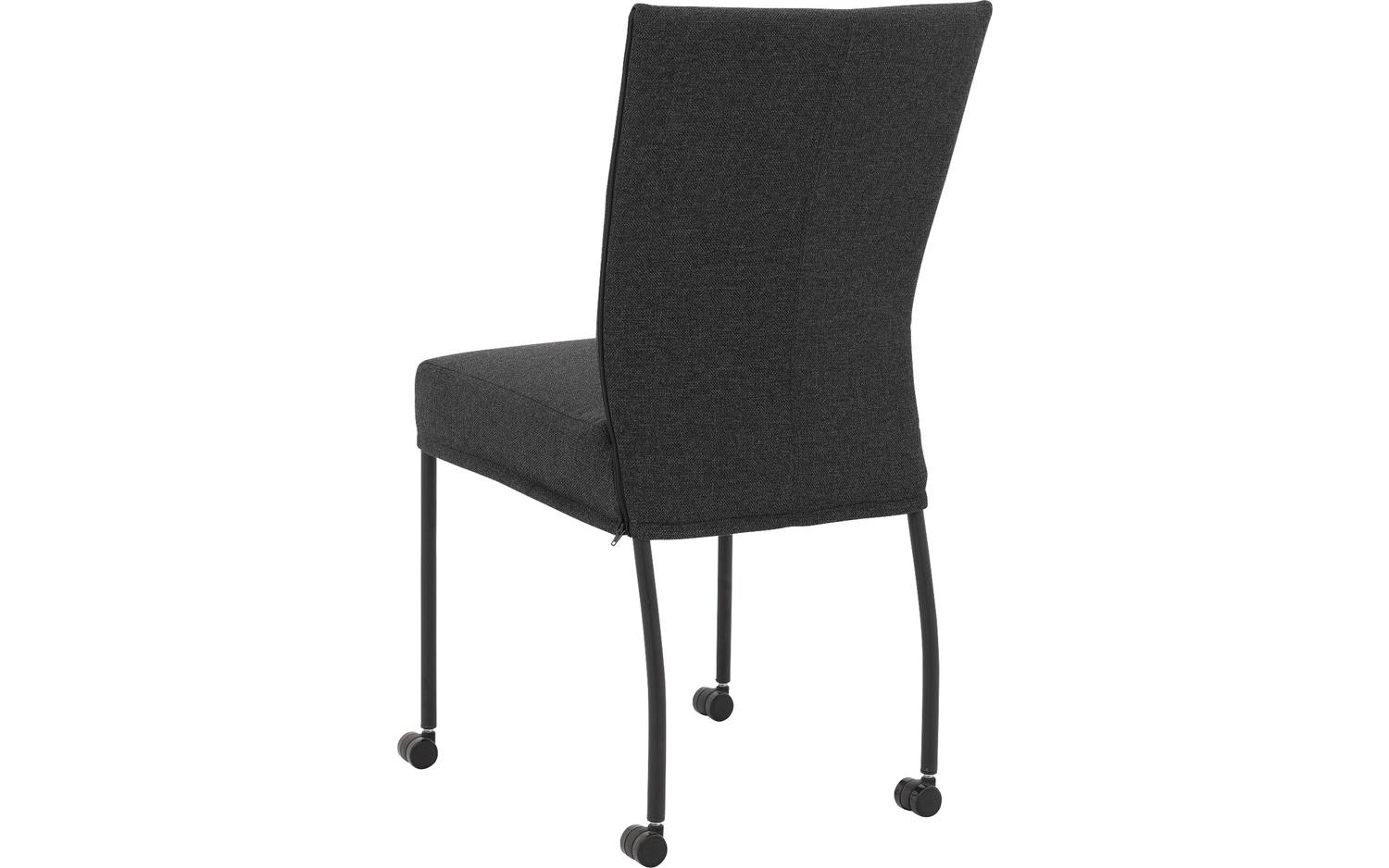 Eetkamerstoel Funk heeft een strak en modern design dat in verschillende interieurstijlen past. De fijn geweven Broadway stof in antraciet geeft de stoel een rijke uitstraling en is bestand tegen intensief dagelijks gebruik. Het zwarte frame met poedercoating vormt een mooi contrast met de grijze stoffering.