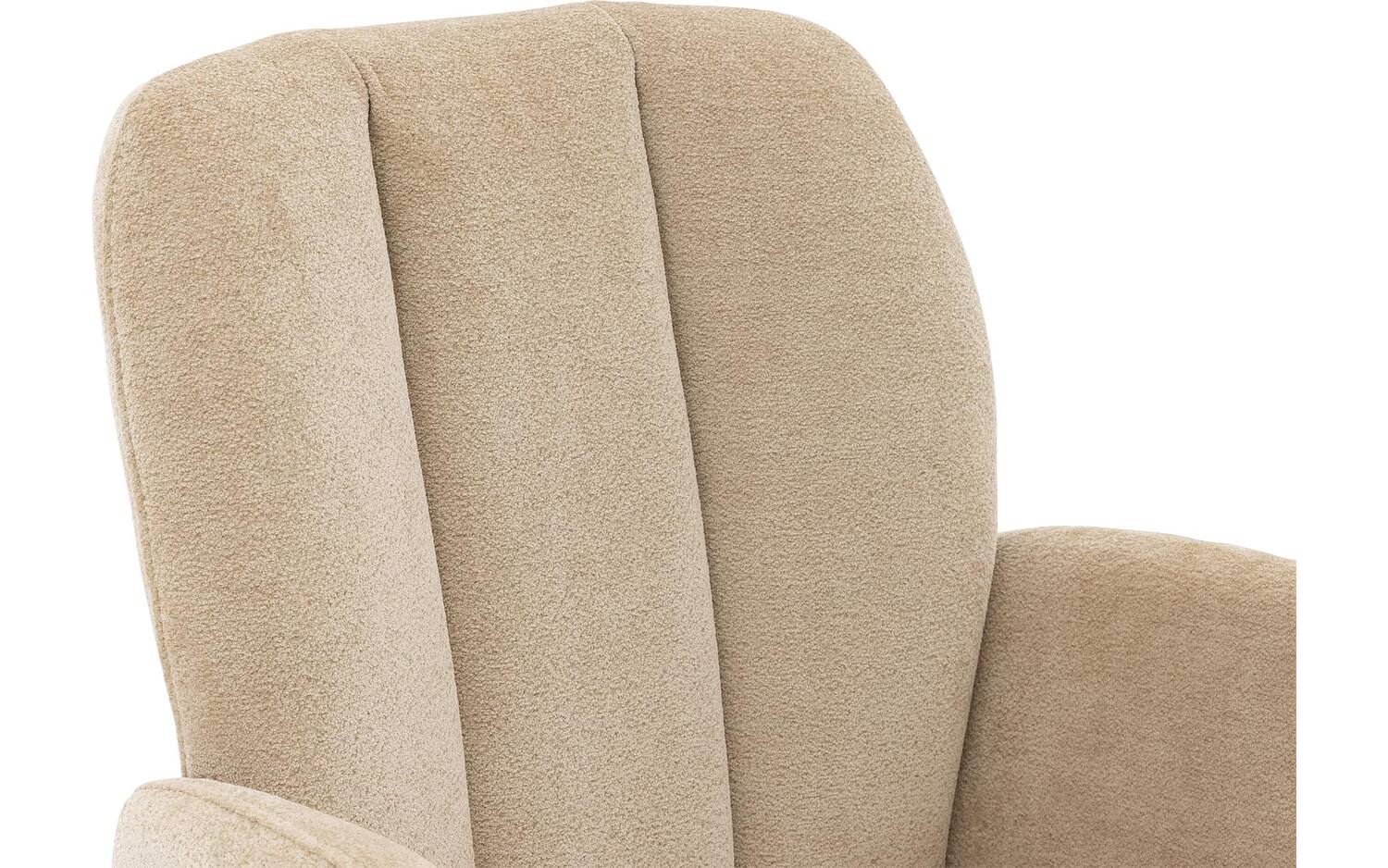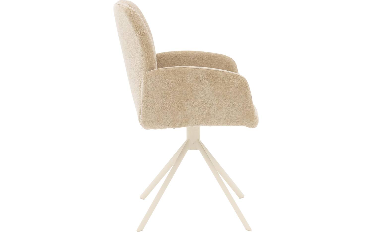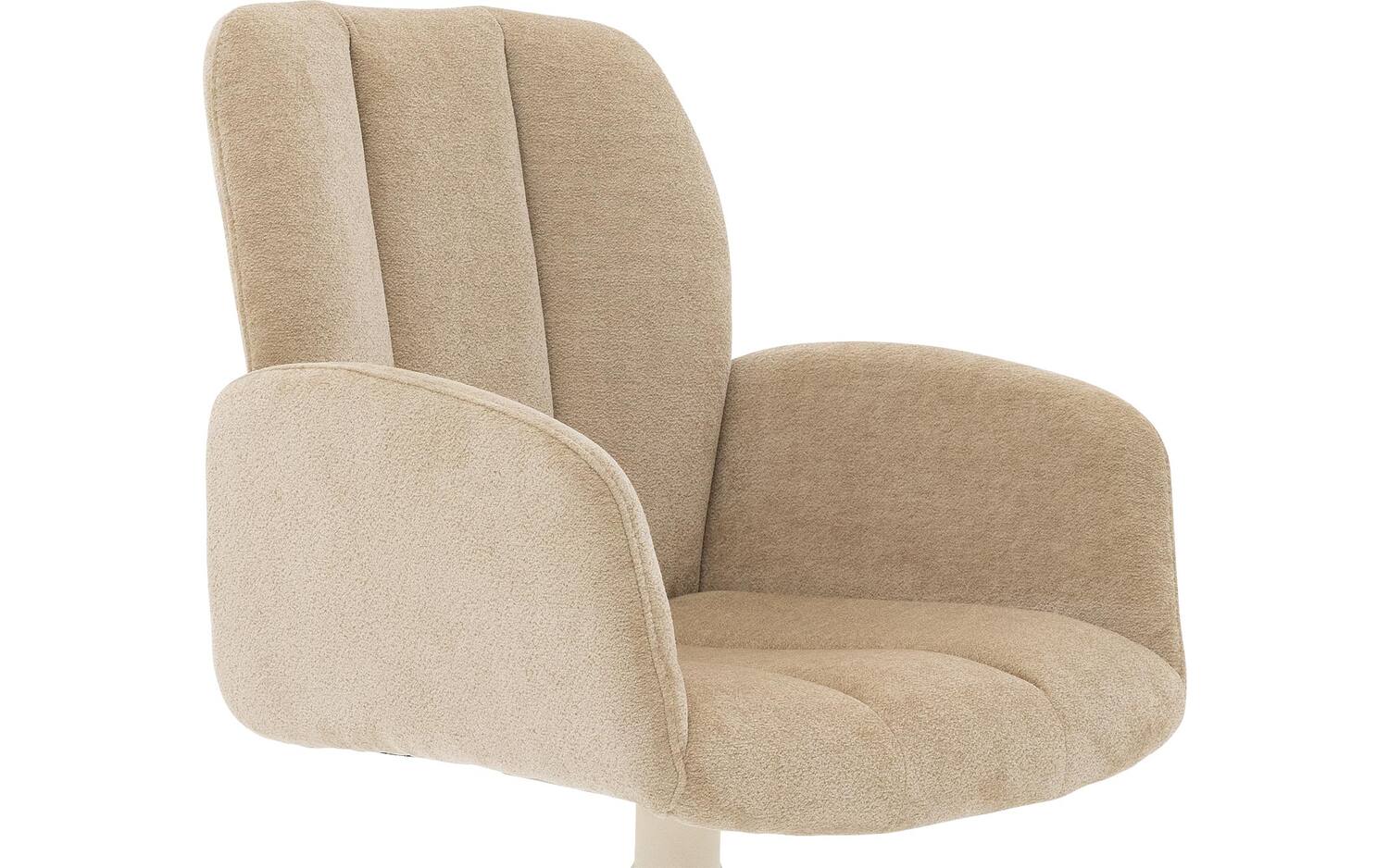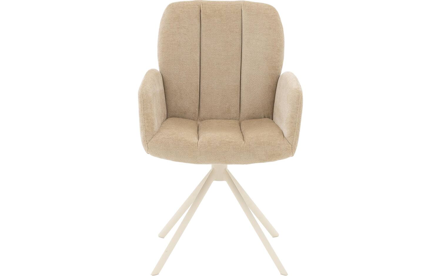 Stijlvolle details van deze beige eetkamerstoel met armleuning