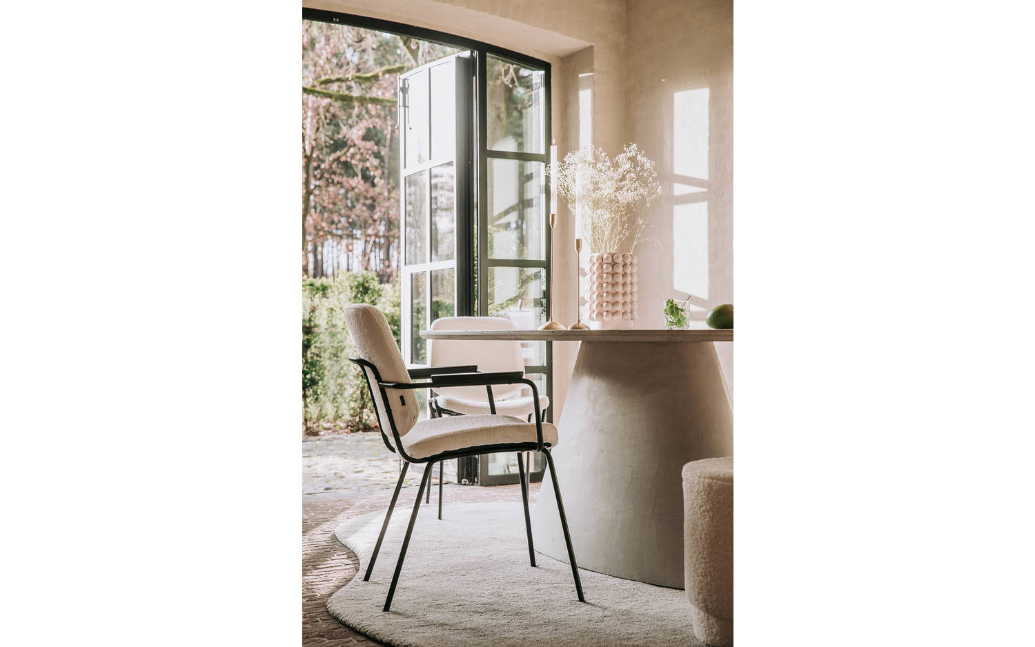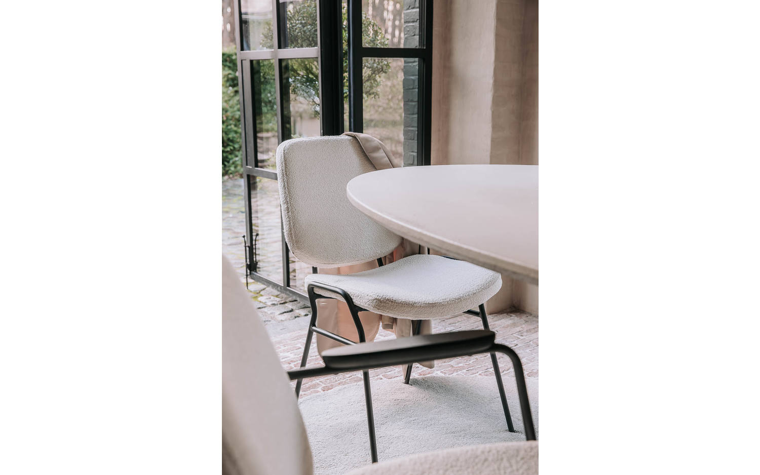- De zachte bouclé stof zit heerlijk en is een trendy keuze.