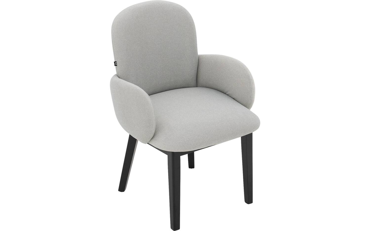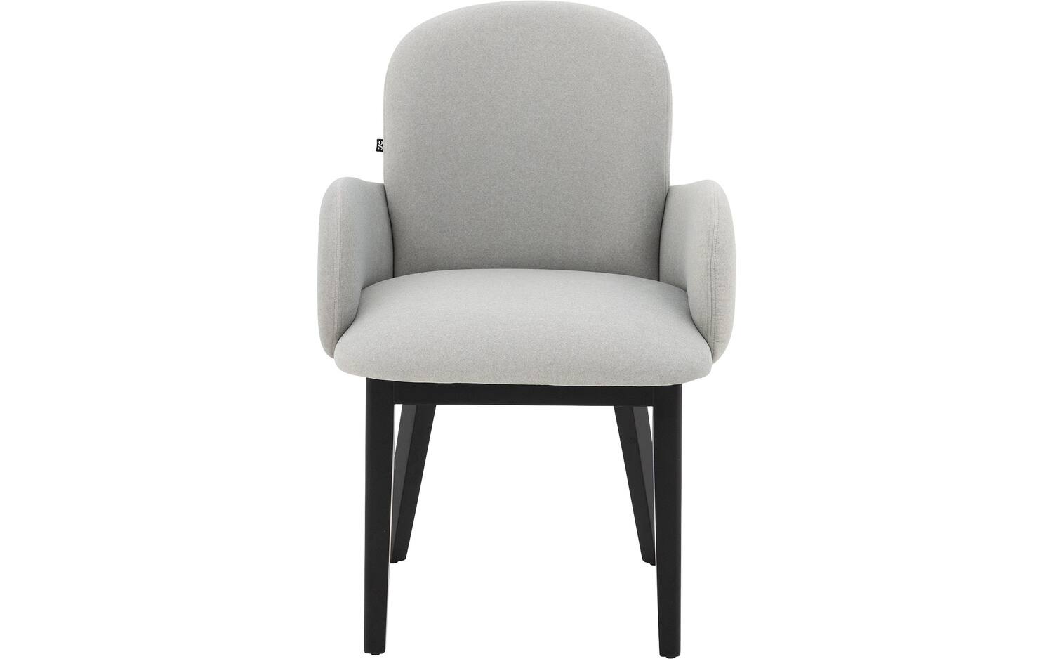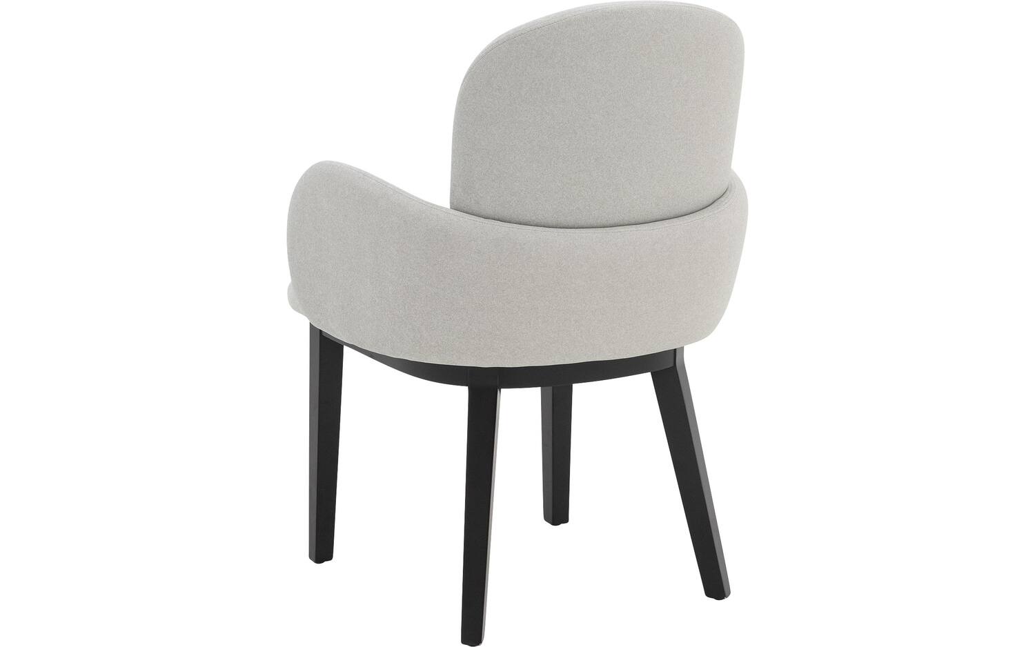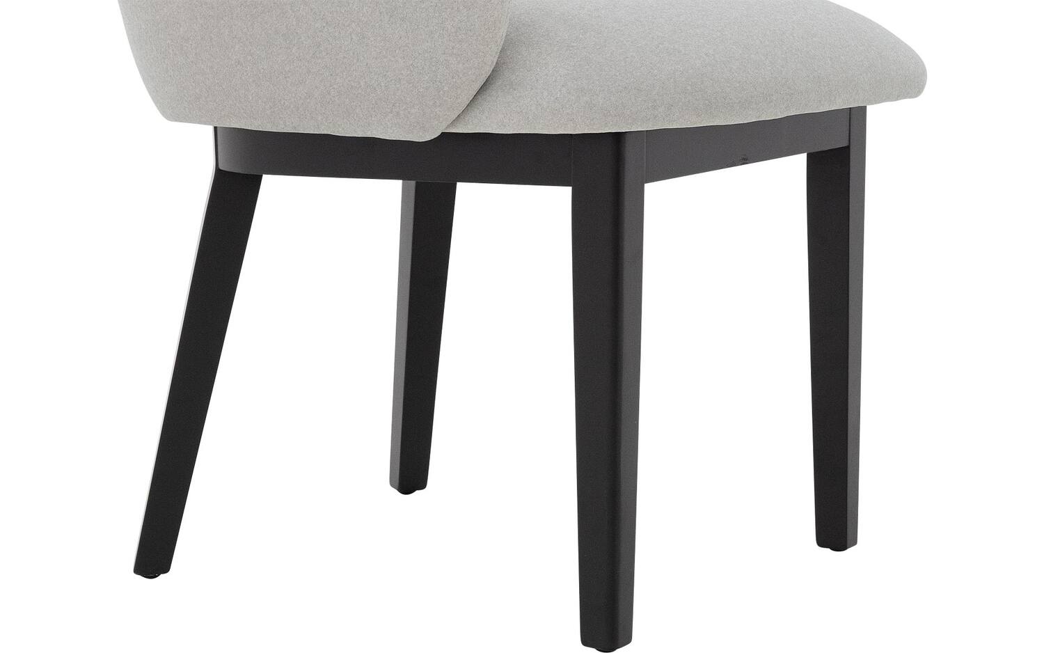 Het massief berkenhouten onderstel met zwarte gelakte poten maakt het plaatje compleet. Deze combinatie van lichtgrijs en zwart past mooi bij verschillende interieurstijlen. De stoel heeft geen wielen, dus staat stevig op zijn plek rondom de eettafel.