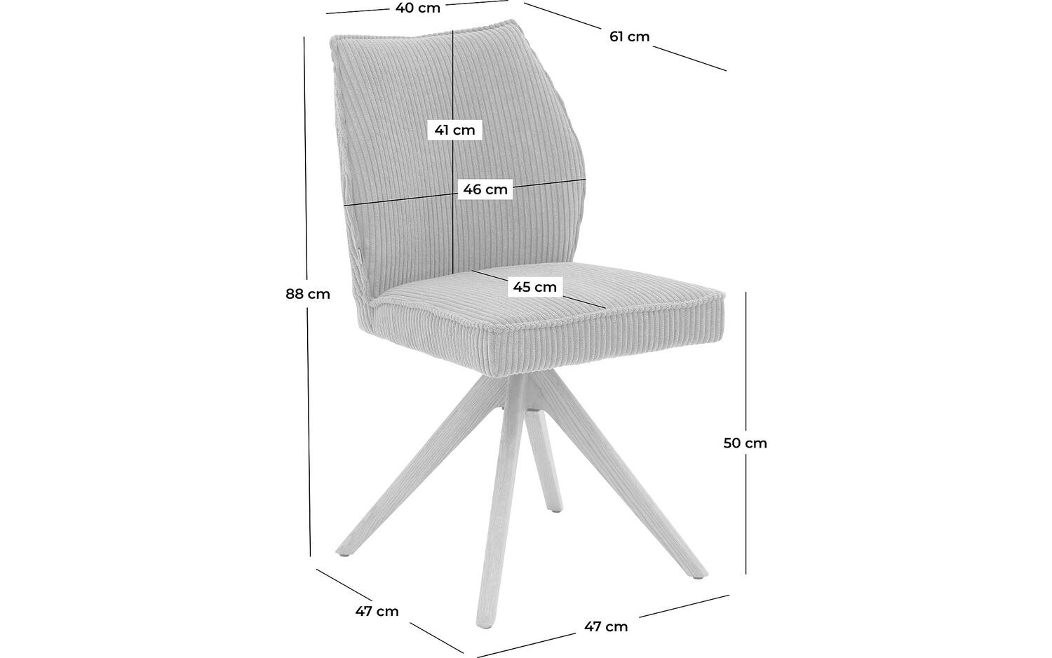 Door de draaibare functie schuif je gemakkelijk aan en van tafel, zonder de vloer te beschadigen. De 96 cm hoge rugleuning zorgt voor een comfortabele zitpositie, terwijl het strakke design zonder armleuningen zorgt dat de stoel niet te veel ruimte inneemt aan je eettafel.