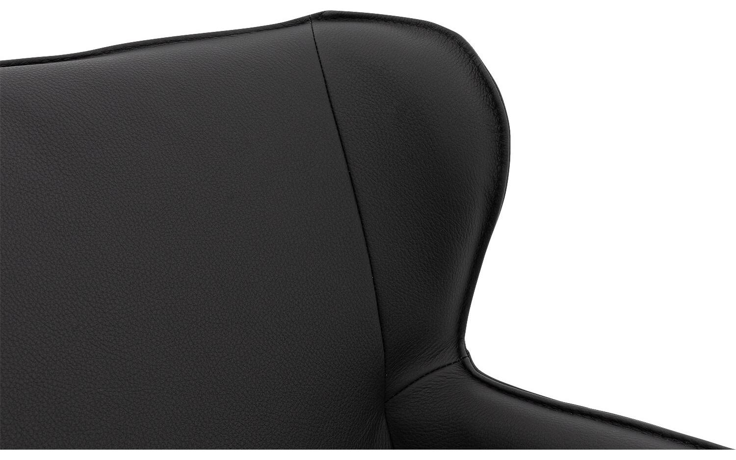 Stijlvolle details van deze zwarte leren eetkamerstoel