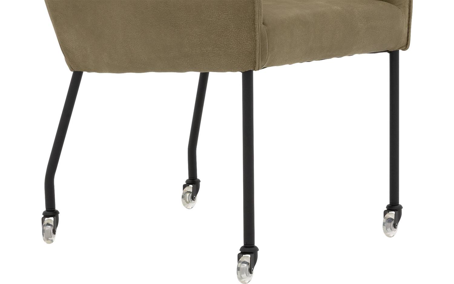 Stijlvolle details van deze groene eetkamerstoel met armleuning