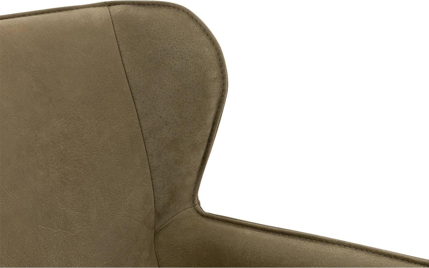 Het elegante design van eetstoel Leogang komt prachtig tot zijn recht in het olijfgroene buffalo leer. Dit fijn opgeschuurde nerfleer heeft een warme, suède-achtige uitstraling die zacht aanvoelt maar ook stoer oogt. Voor dit exclusieve leertype worden alleen de beste huiden gebruikt, waarbij de natuurlijke nerfstructuur behouden blijft.