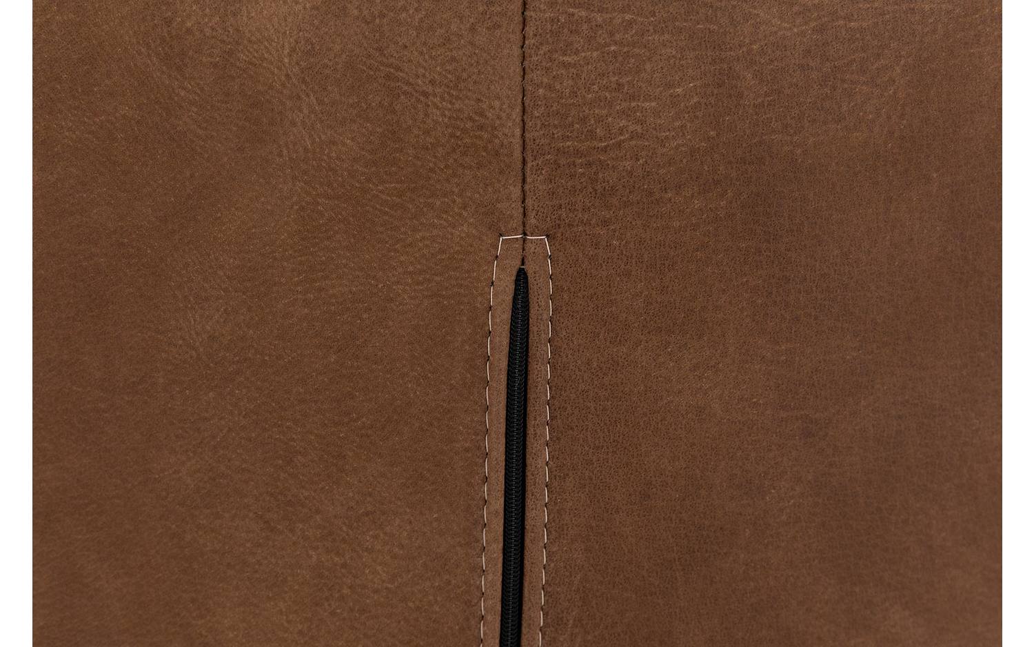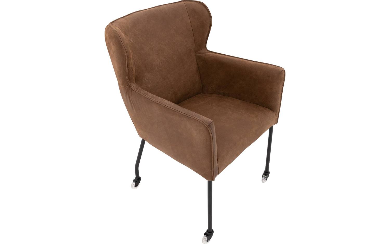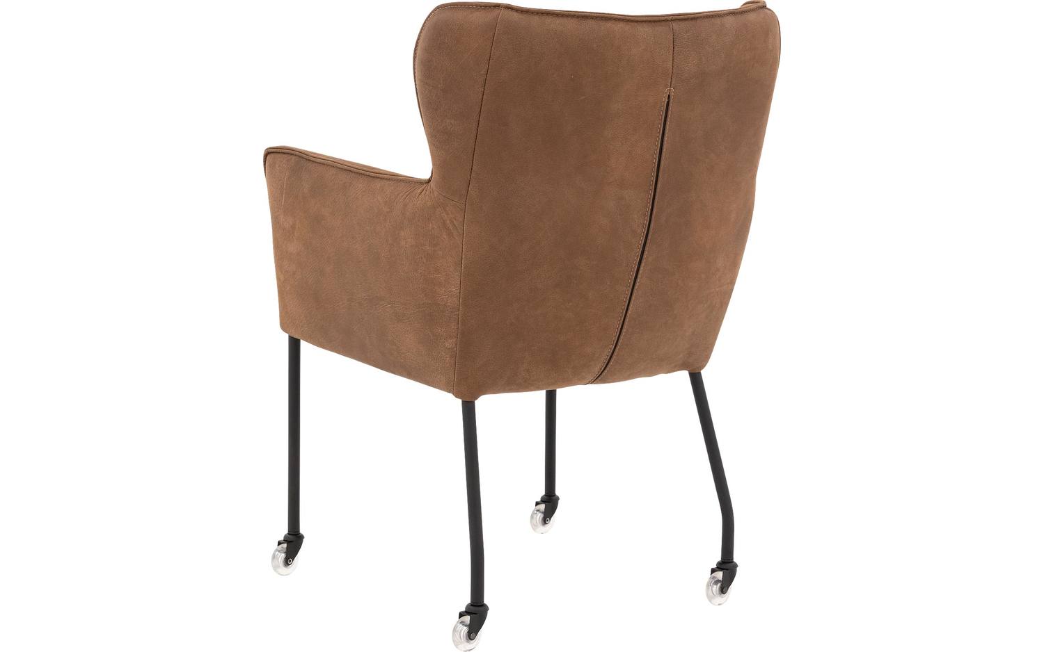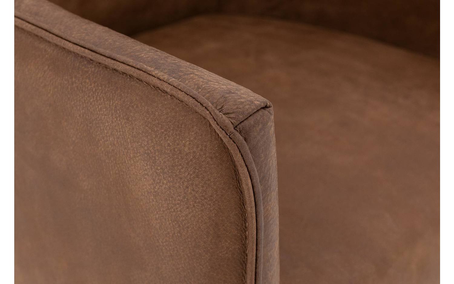 Stijlvolle details van deze bruine eetkamerstoel met armleuning