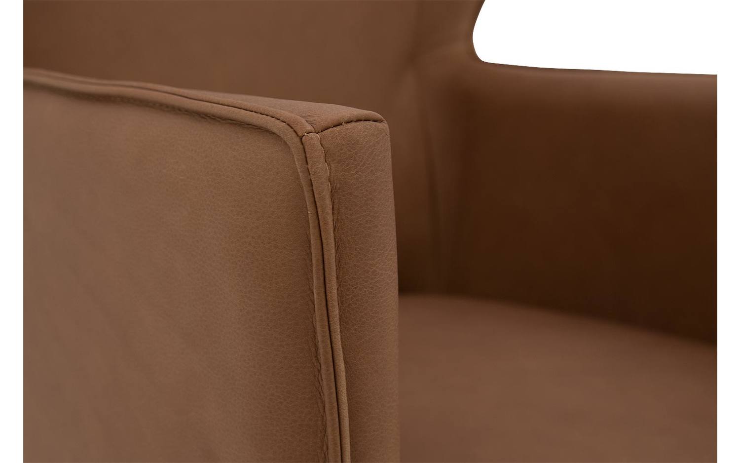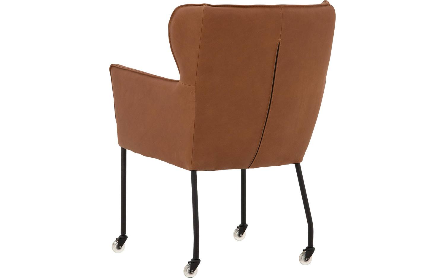 Stijlvolle details van deze cognac leren eetkamerstoel