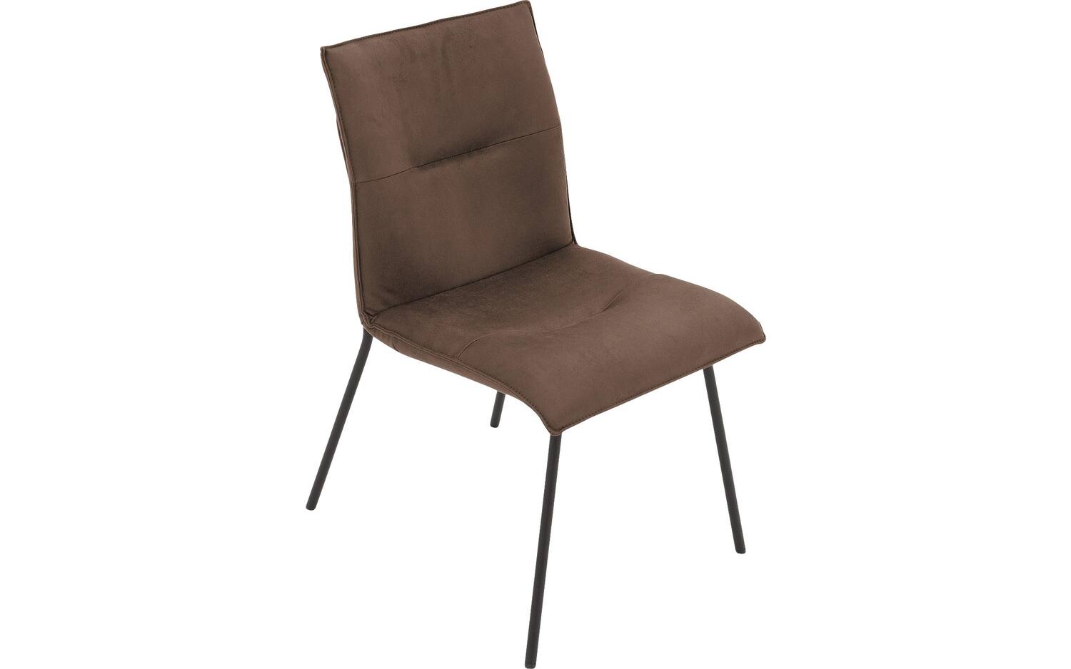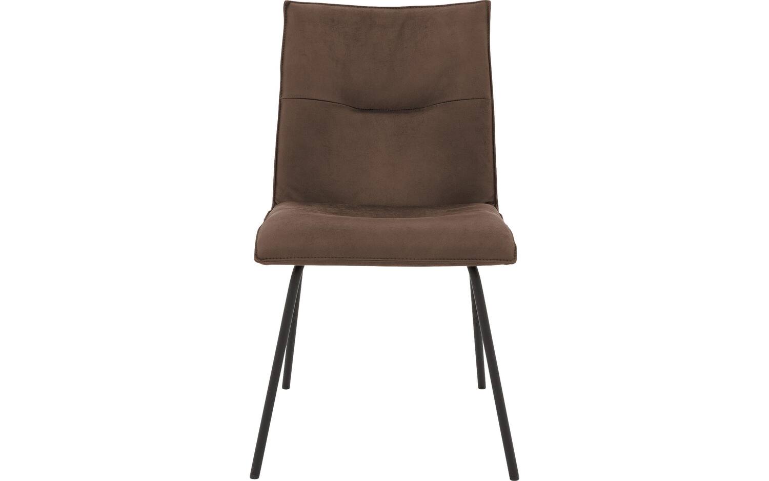Het strakke zwarte frame van deze stoel zonder armleuning vormt een mooie contrast met de warme bruine kleur van het microleer. Door de vaste stoffering heeft Milan een moderne en strakke uitstraling die past bij diverse interieurstijlen, van landelijk tot modern.