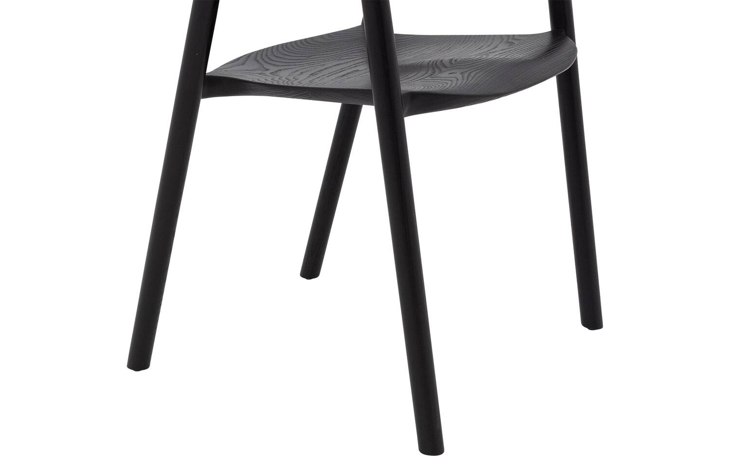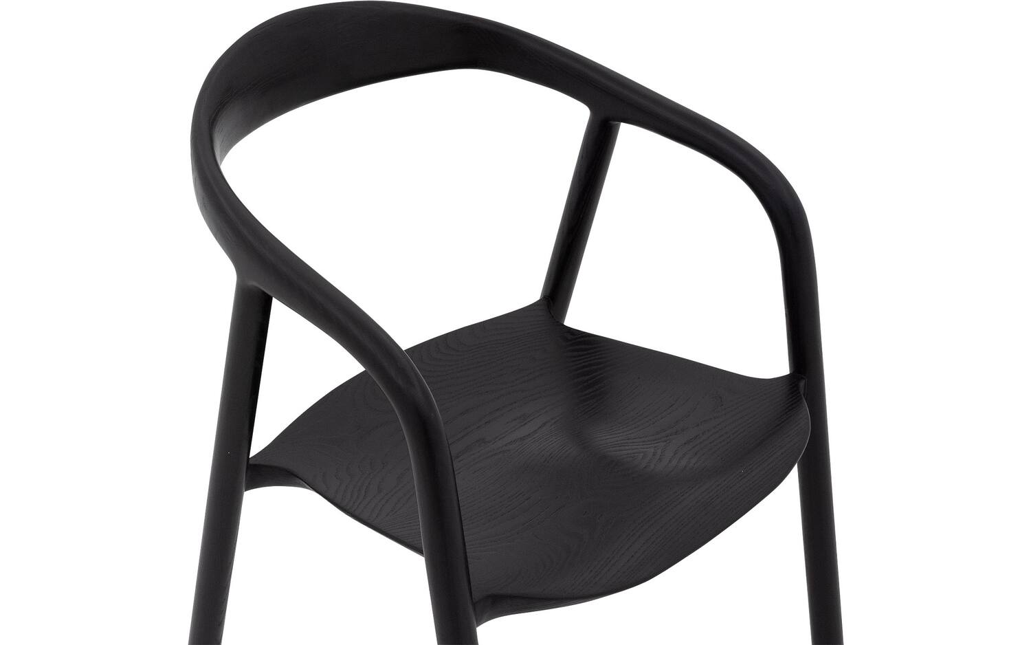 Eetkamerstoel Prins is volledig gemaakt van duurzaam essenhout met een zwarte laklaag. Dit materiaal is erg sterk en licht in gewicht, waardoor je de stoel gemakkelijk verplaatst. De verschillende kleurnuances in het essenhout maken elk exemplaar uniek en geven de stoel een levendig karakter.