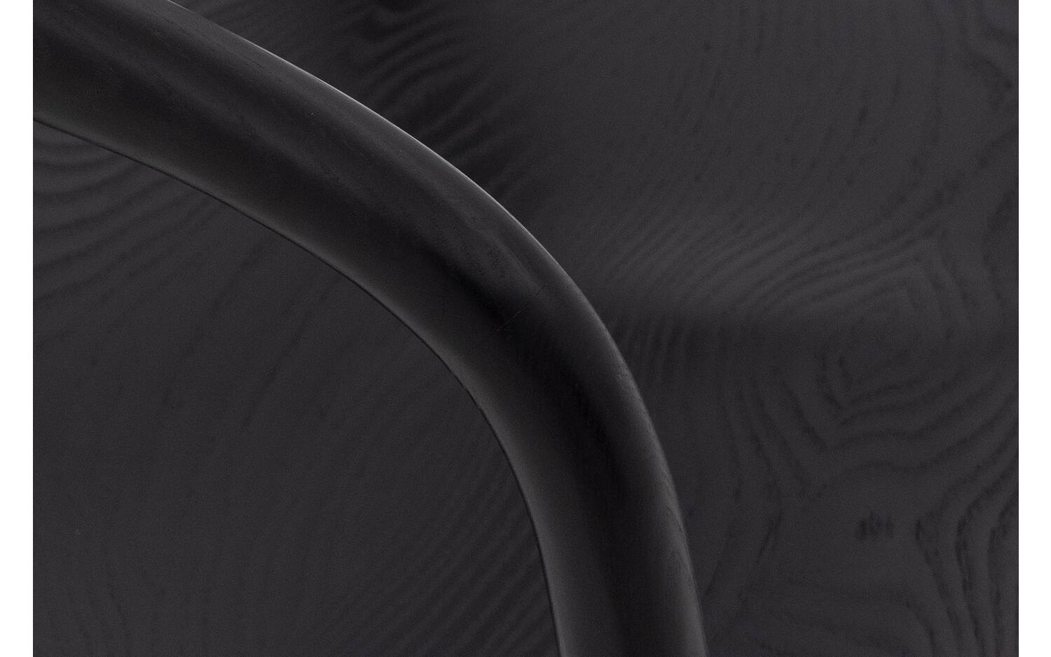 Stijlvolle details van deze zwarte houten eetkamerstoel
