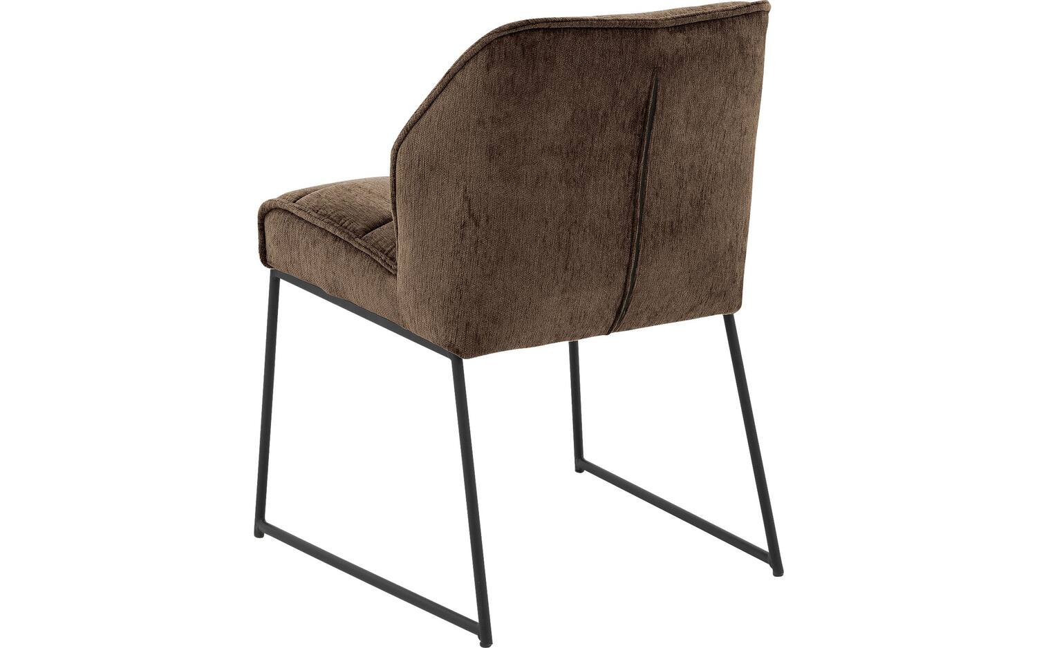 Wat eetkamerstoel Ronnie zo bijzonder maakt, is de fijn geweven oud roze stof die zacht aanvoelt en prachtig contrasteert met de zwart mat gelakte sledepoot. De stoel oogt elegant door de strakke vormgeving, maar heeft tegelijk een vriendelijke uitstraling door de warme kleur.