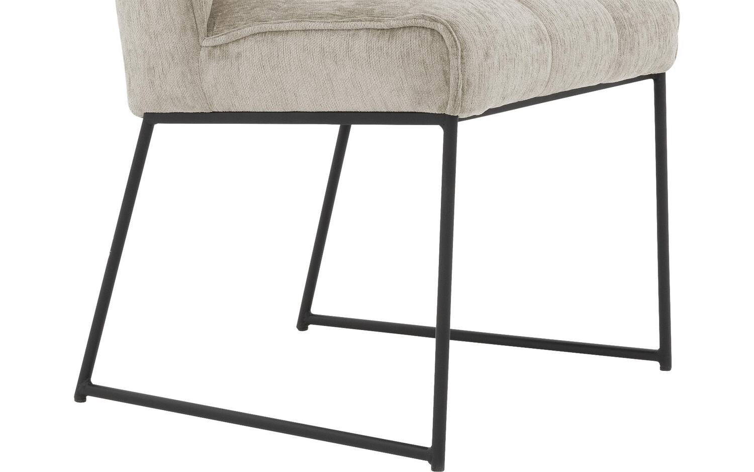 De zwart mat gelakte sledepoot geeft de stoel een moderne uitstraling en zorgt voor stabiliteit. Door de vaste stoffering behoudt eetstoel Ronnie jarenlang zijn strakke vorm. Deze combinatie van duurzame materialen en tijdloos design maakt Ronnie tot een betrouwbare keuze voor je eetkamer.