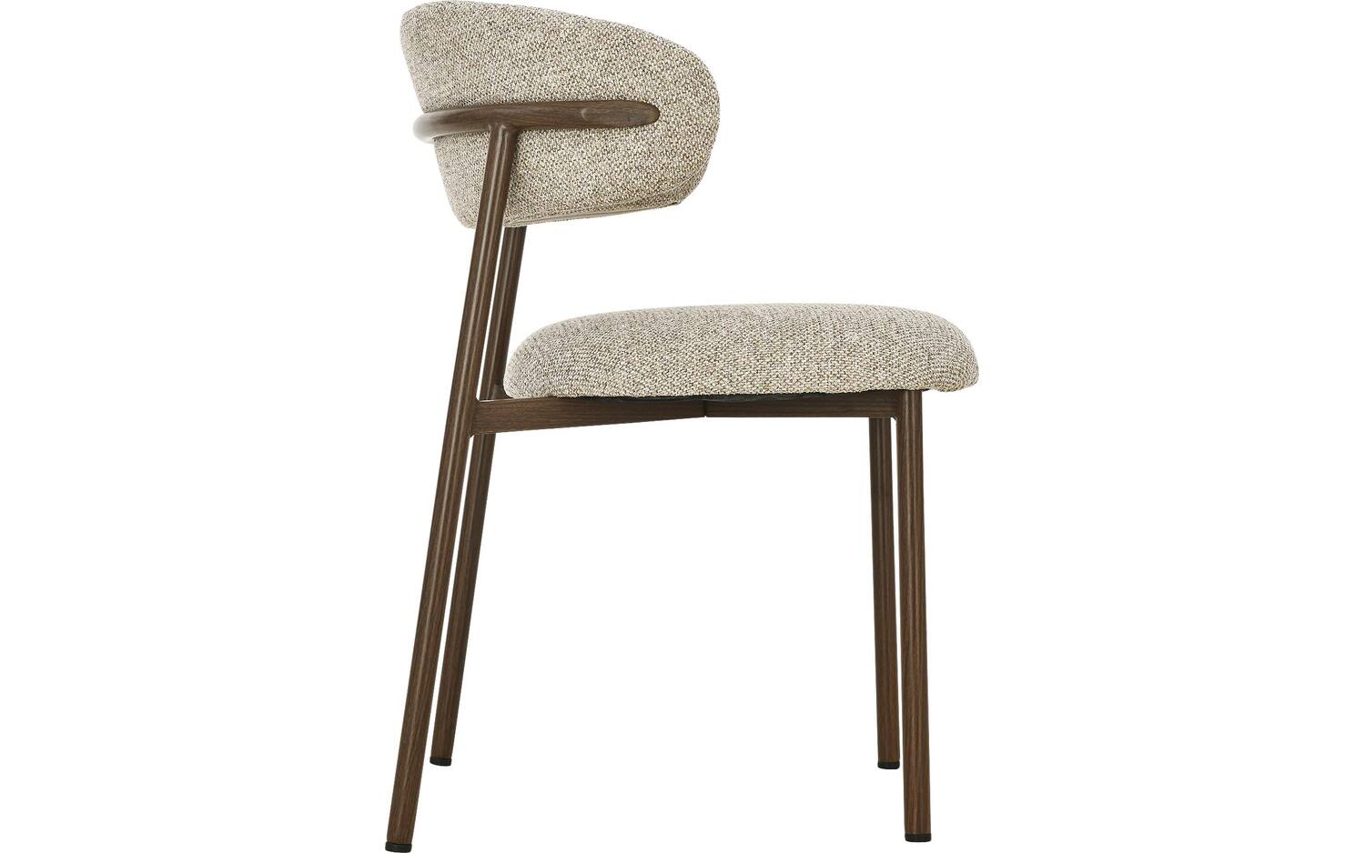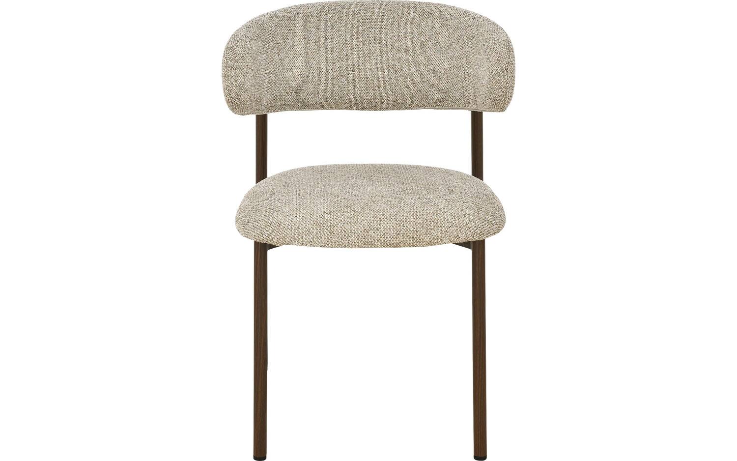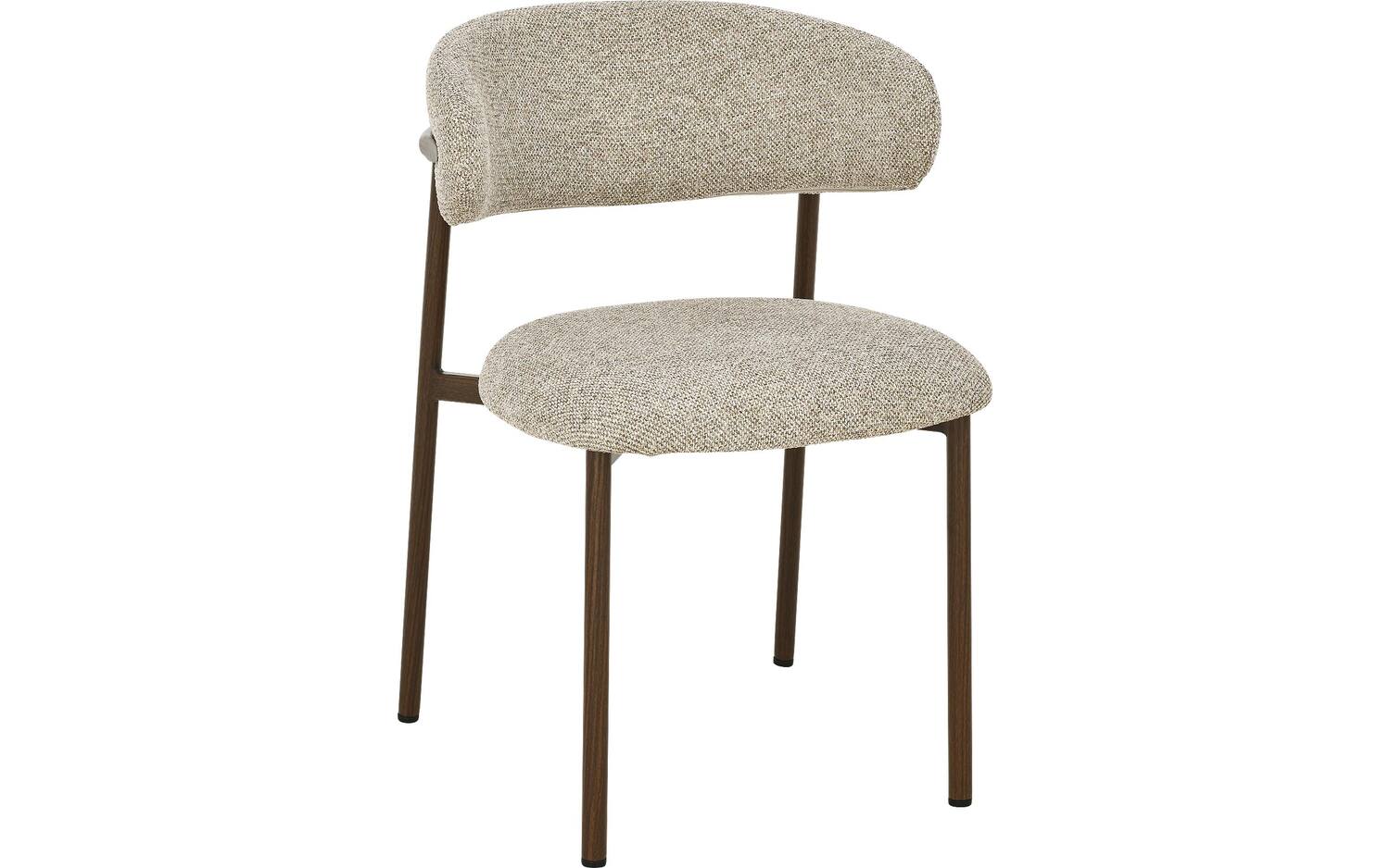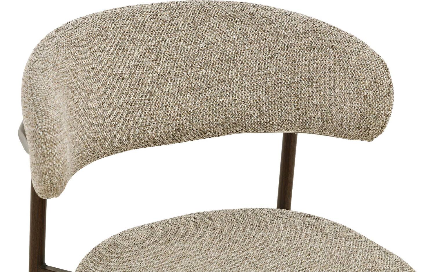 De beige stoffen bekleding geeft deze eettafelstoel een warme en rustgevende uitstraling. Het tijdloze ontwerp past uitstekend bij verschillende woonkamerstijlen, van modern tot landelijk. De stof is geschikt voor dagelijks gebruik, zodat je er lang van kunt genieten.