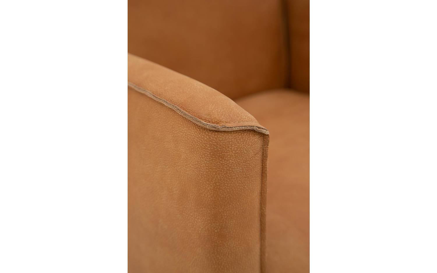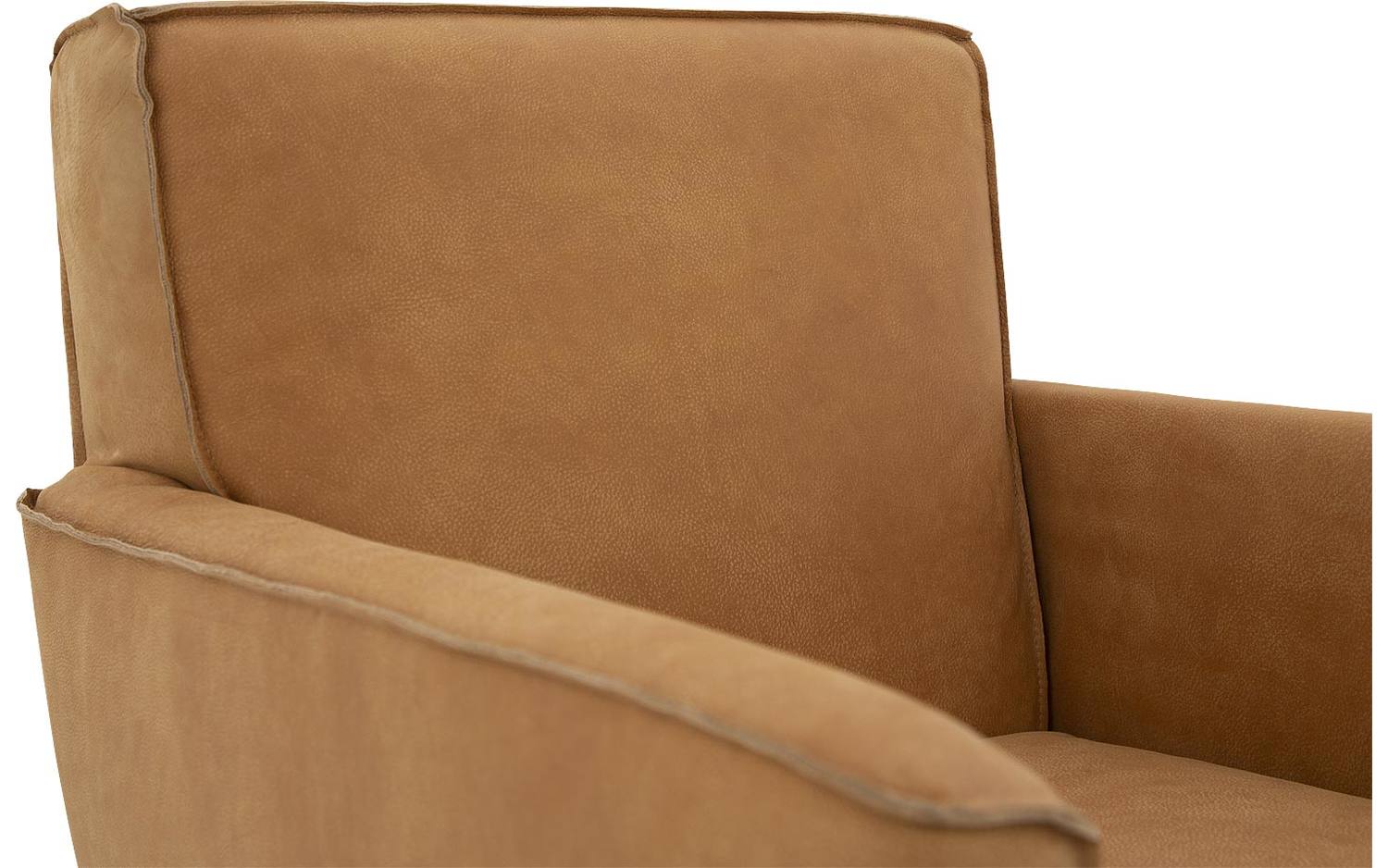 Het buffalo leer geeft eetkamerstoel Tom een suède-achtige uitstraling die heerlijk zacht aanvoelt. Dit fijn opgeschuurde nerfleer is een hoogwaardige keuze die zijn natuurlijke nerfstructuur behoudt en zorgt voor een stoere, maar tegelijk warme sfeer. De cognac kleur combineert prachtig met het antracietkleurige metalen frame.