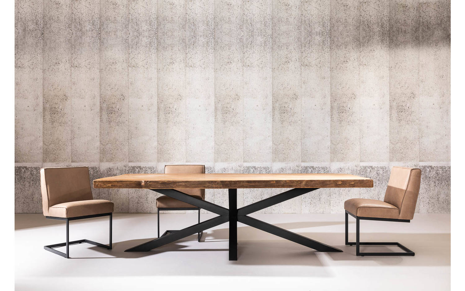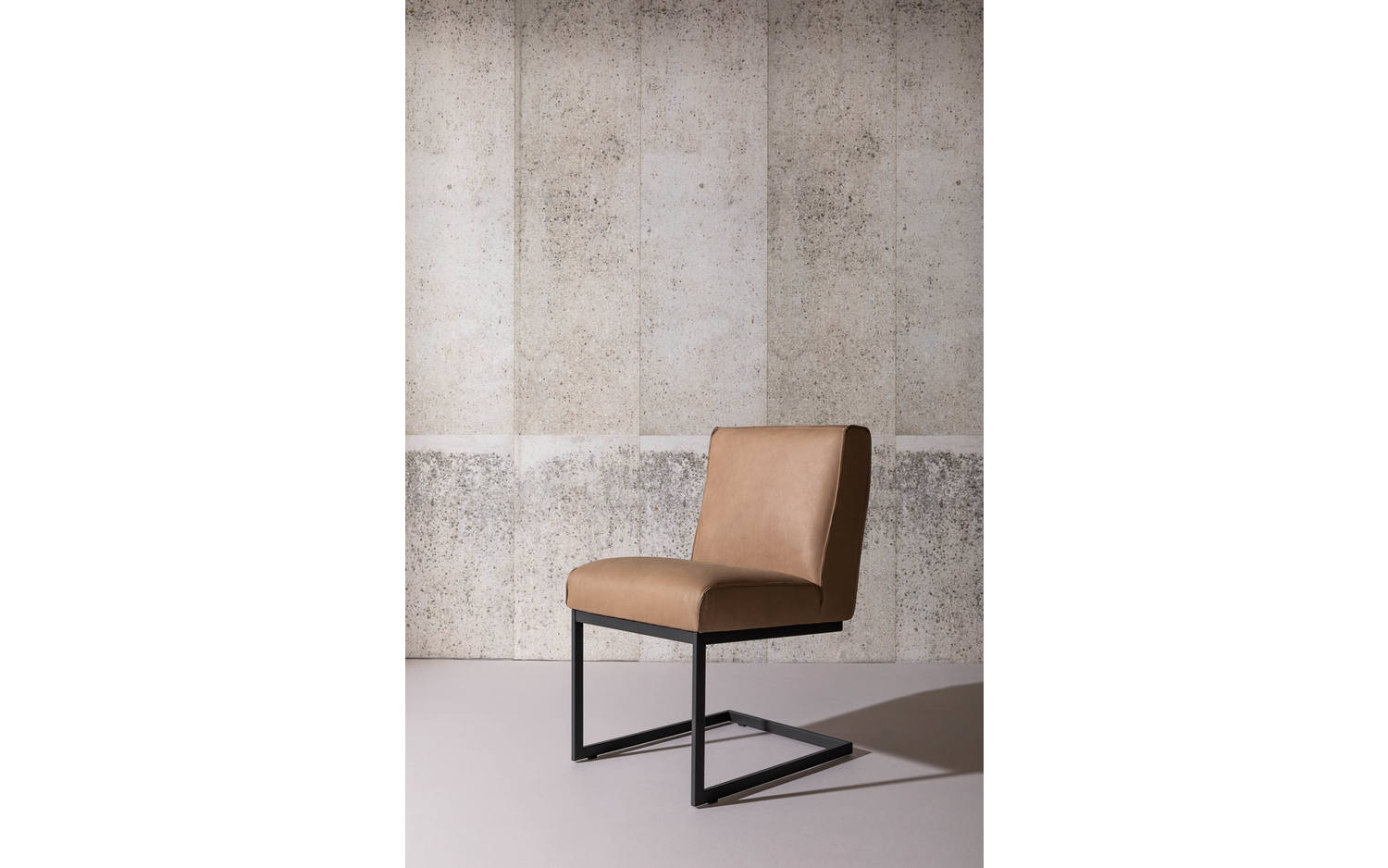 - Door het stalen frame oogt de eetkamerstoel ruimtelijk.