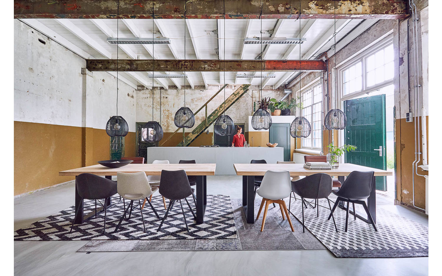 - De metalen spinpoot zorgt voor een eigentijdse look.