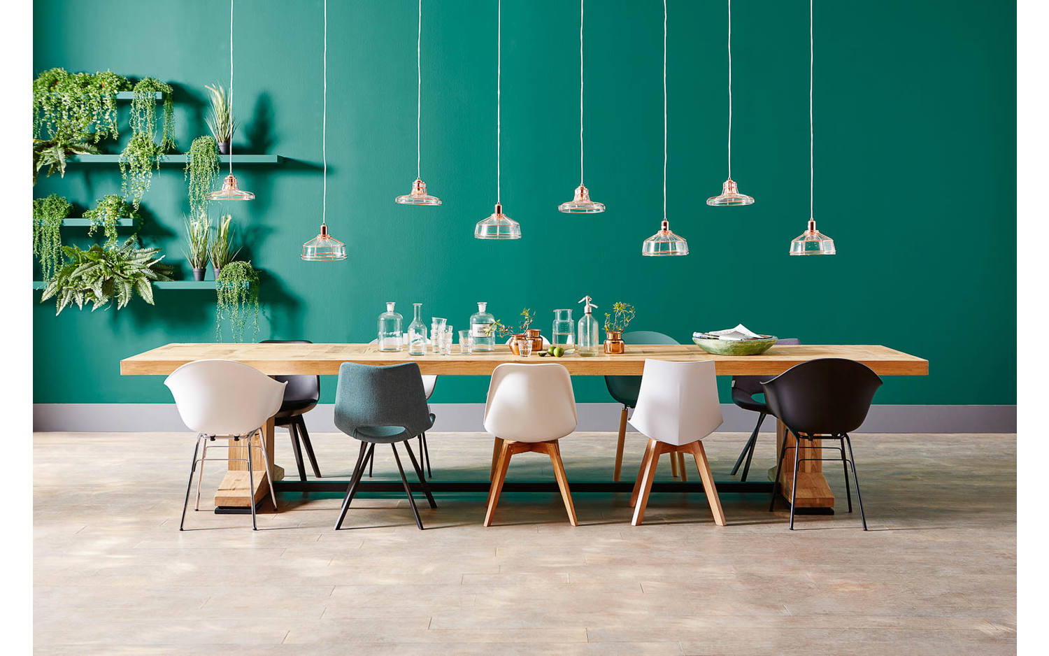 - De ronde vormen en het open design in de rugleuning geven de eetkamerstoel een luchtige uitstraling.