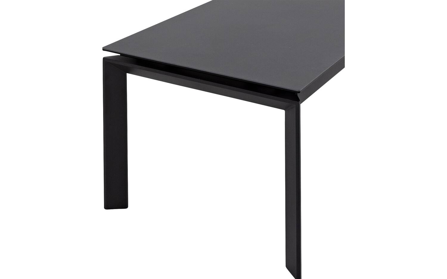 Het zwarte keramische tafelblad is bestand tegen hoge temperaturen en makkelijk schoon te maken. De strakke randafwerking geeft de tafel een moderne, verfijnde look die jaren meegaat.