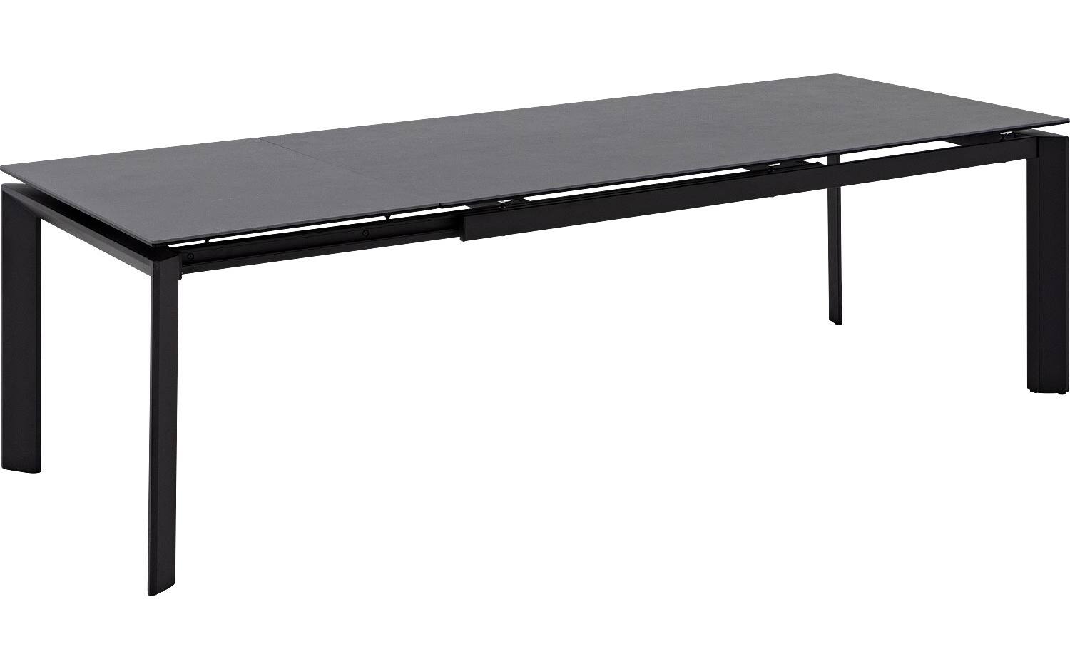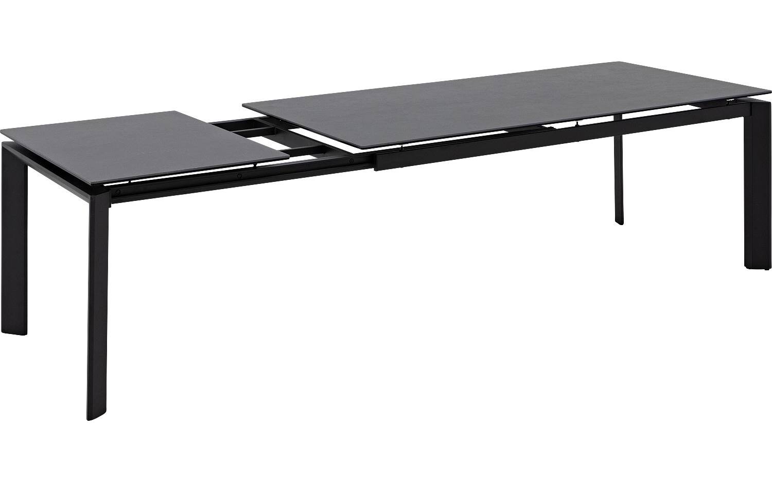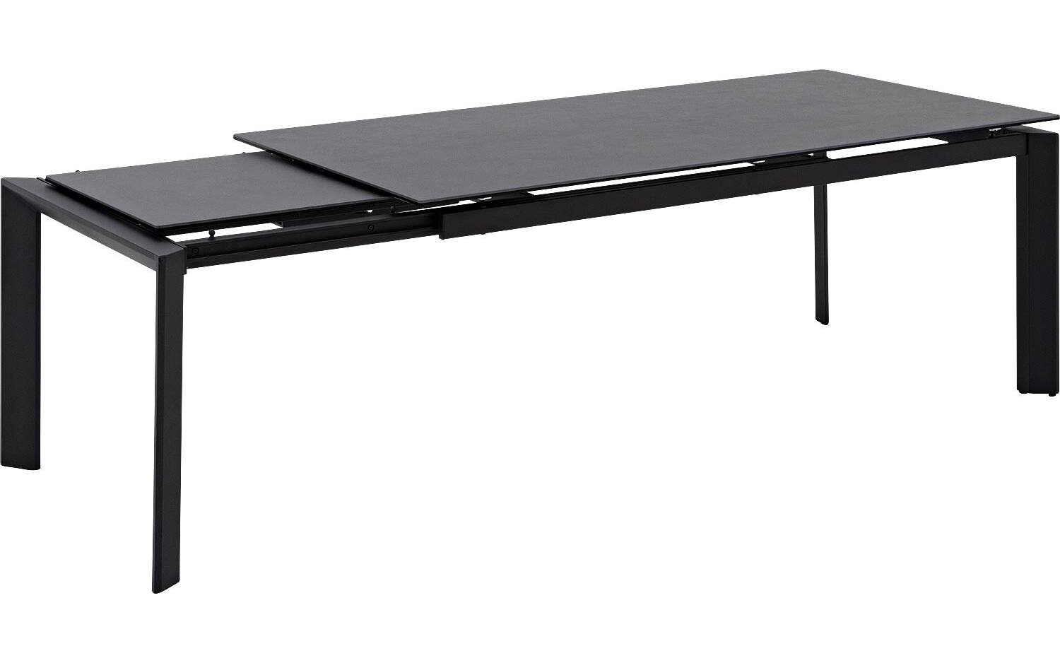 Eettafel Eliana heeft een strakke rechthoekige vorm die past in elke moderne eetkamer. Het zwarte keramische blad en de rechthoekige poot van zwart metaal zorgen voor een tijdloze, elegante uitstraling. Uitgeschoven biedt de tafel comfortabel plaats aan 8 personen.