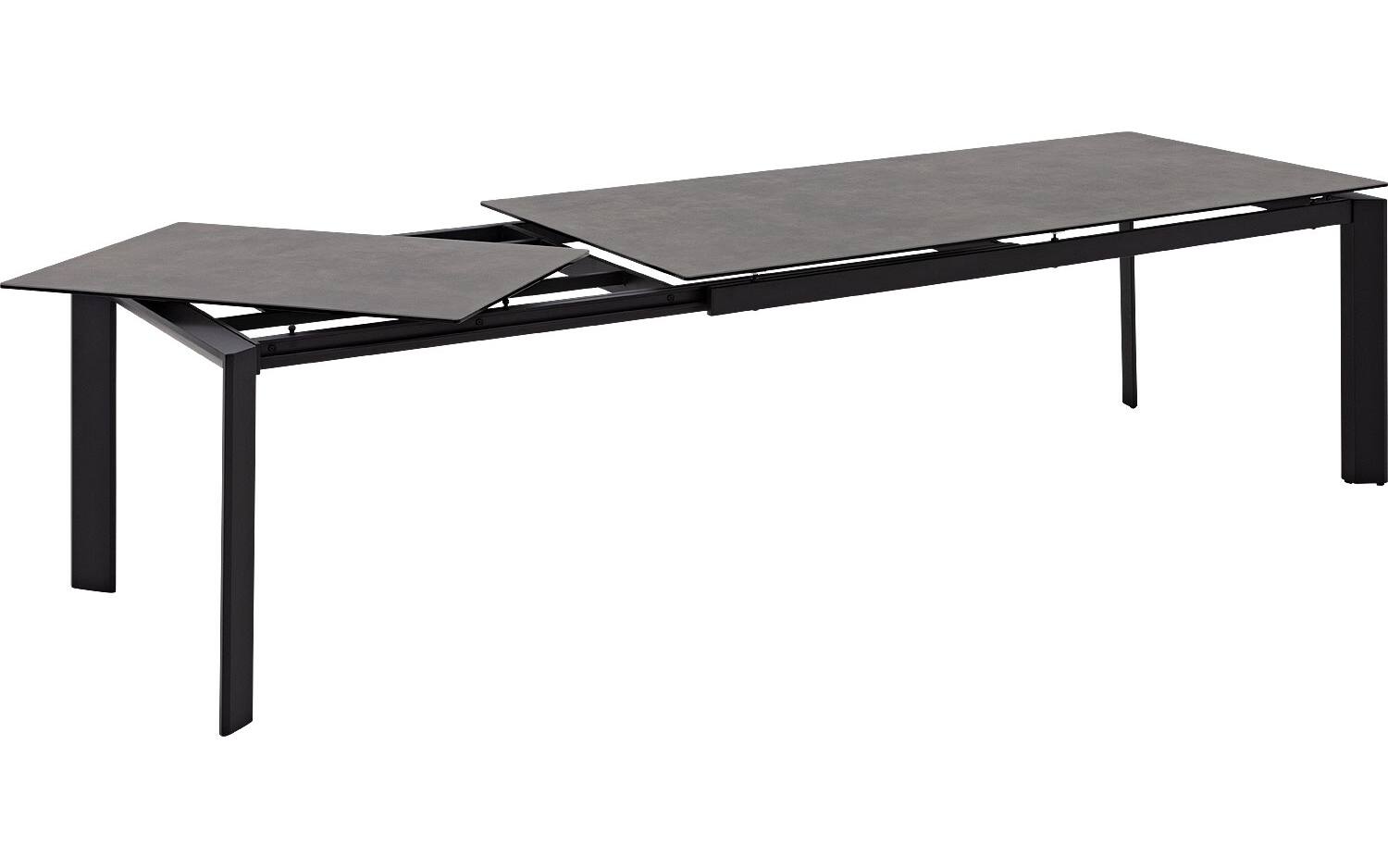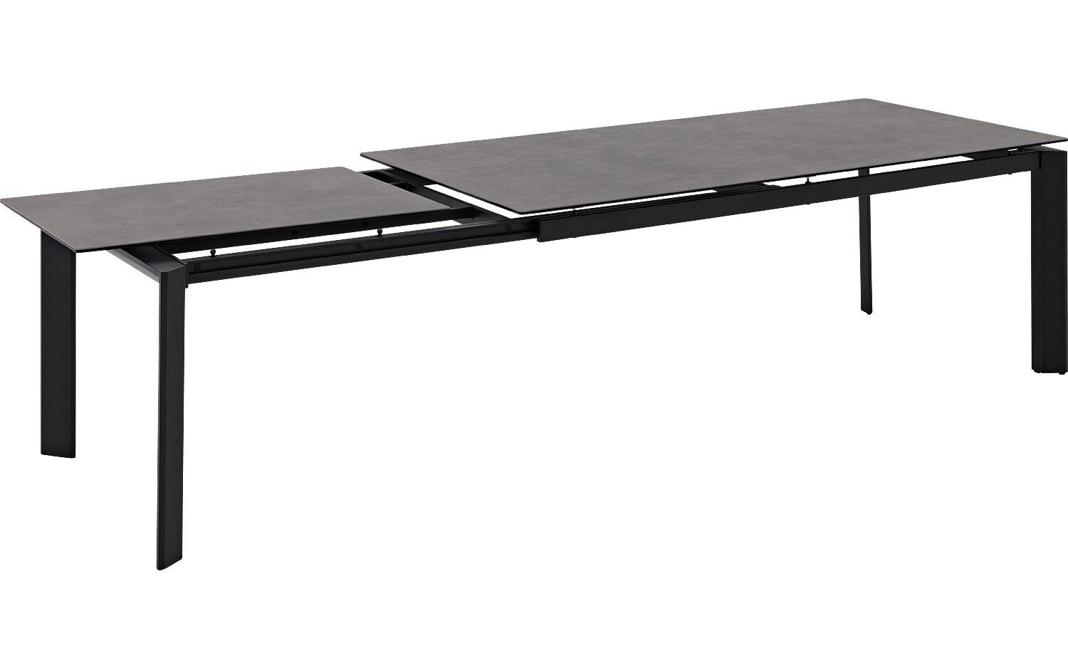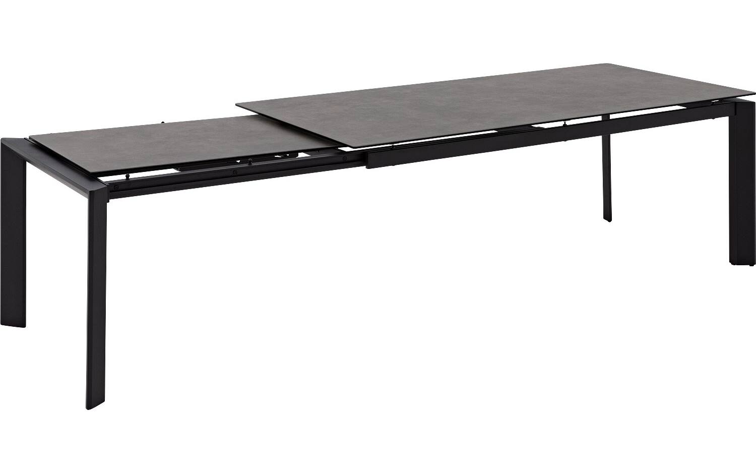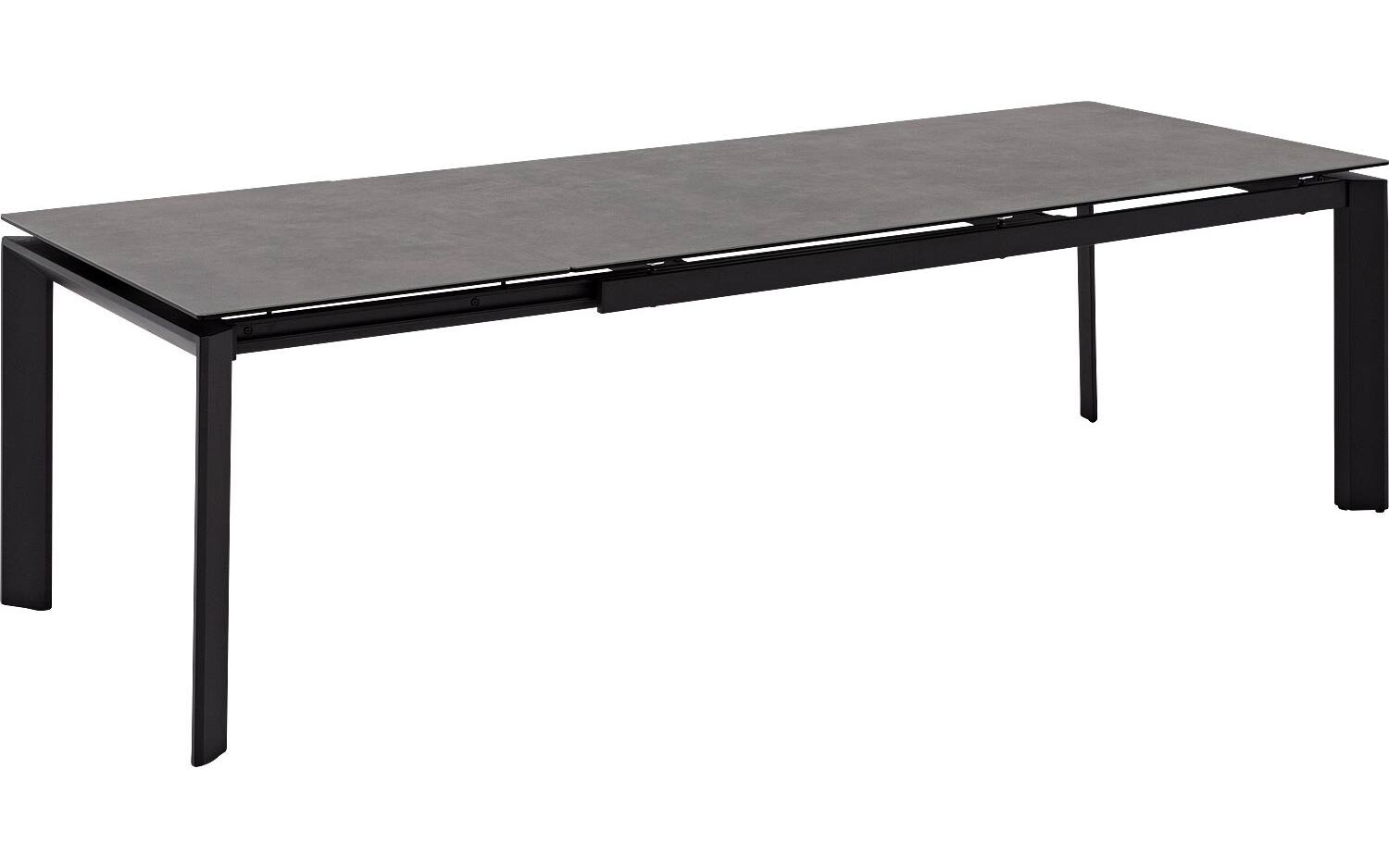 Het donkergrijze keramische tafelblad is krasbestendig en makkelijk schoon te maken. Het materiaal houdt zijn kleur mooi en is bestand tegen dagelijks gebruik. De strakke randafwerking geeft het blad een verfijnde uitstraling.