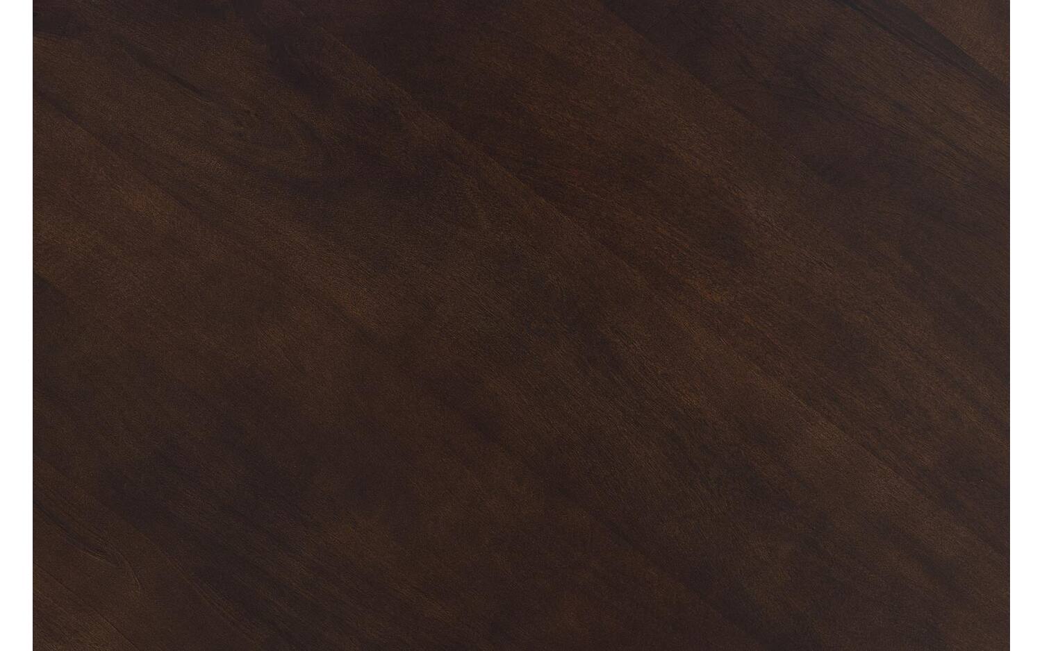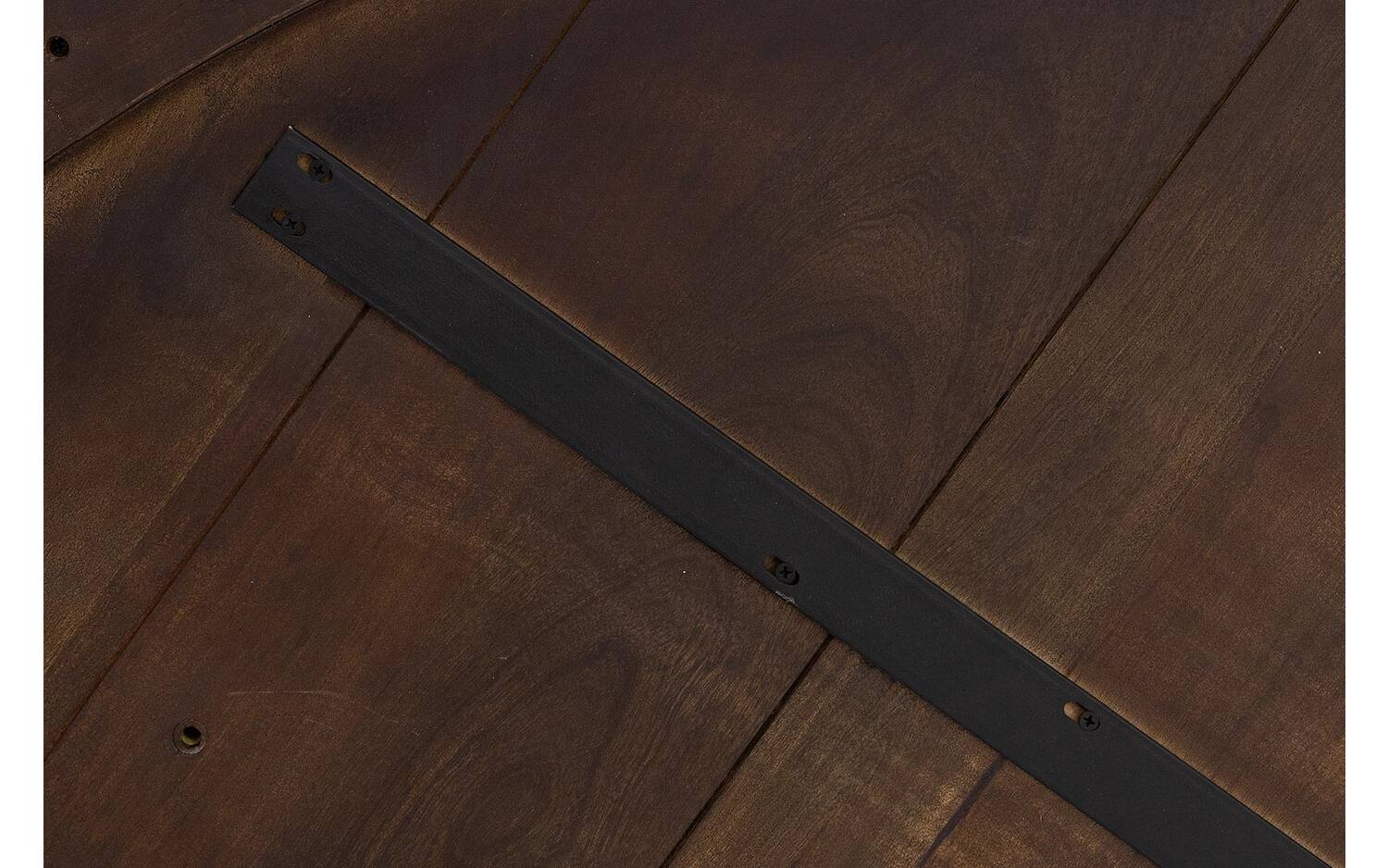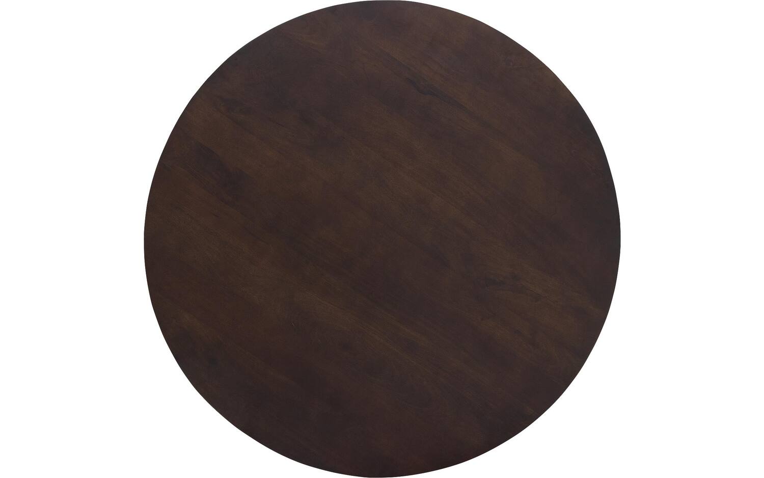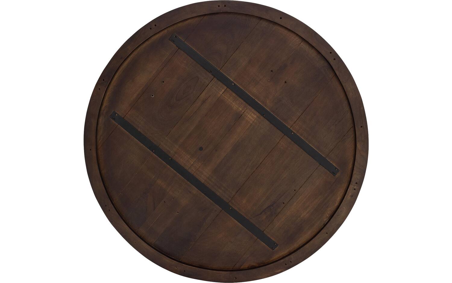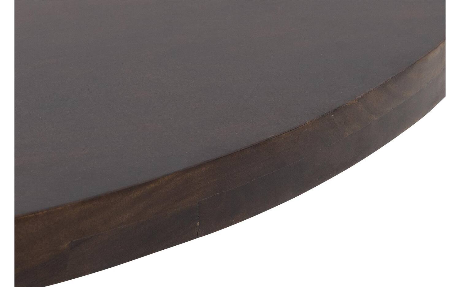 Het ronde blad van mangohout heeft een warme bruine kleur door de notenkleur lak. Het hout is met de hand bewerkt, waardoor je tafel een uniek karakter krijgt met natuurlijke kleurnuances en textuur.