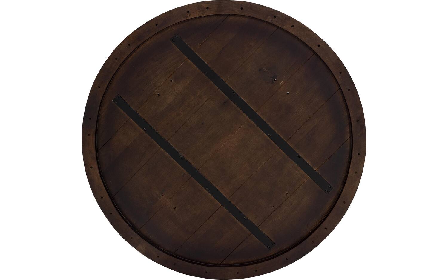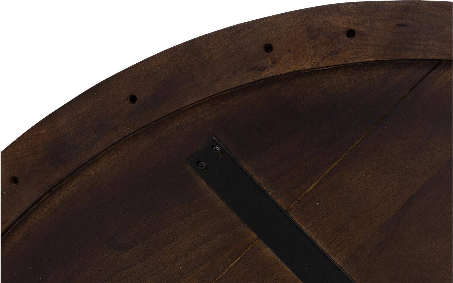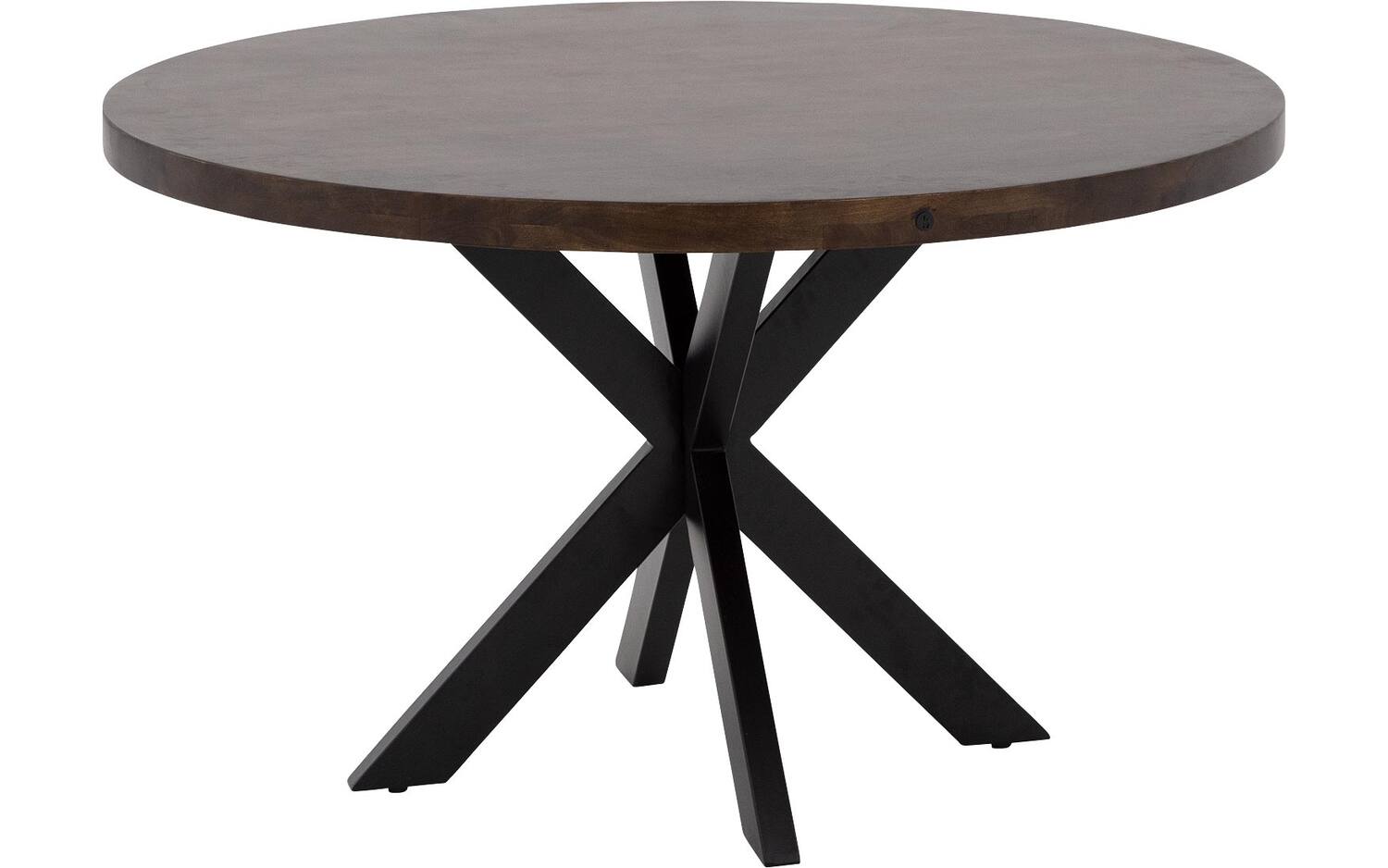 Het ronde tafelblad is gemaakt van duurzaam mangohout met een gelakte afwerking. Deze laklaag beschermt tegen vlekken en zorgt ervoor dat de natuurlijke tekening van het hout mooi uitkomt. Het mangohout heeft een warme notenkleur die sfeer brengt in elke eetkamer.