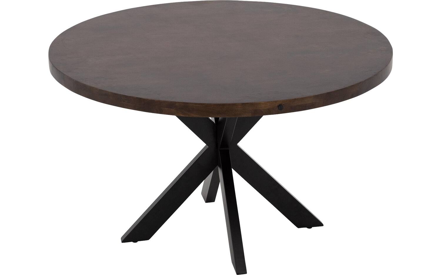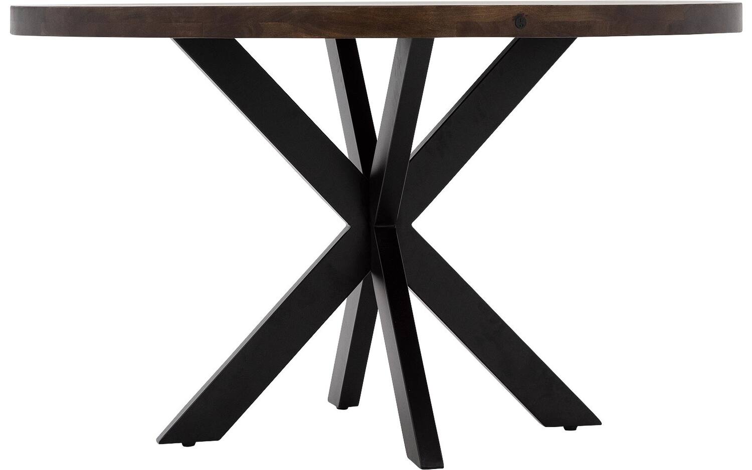 Eettafel Lecce heeft een elegante ronde vorm die uitnodigt tot lange gesprekken aan tafel. De kruispoot van zwart metaal zorgt voor een krachtige basis, terwijl het mangohouten blad in notenkleur warmte uitstraalt. Deze combinatie geeft de tafel een mooi contrast tussen stoer en natuurlijk.