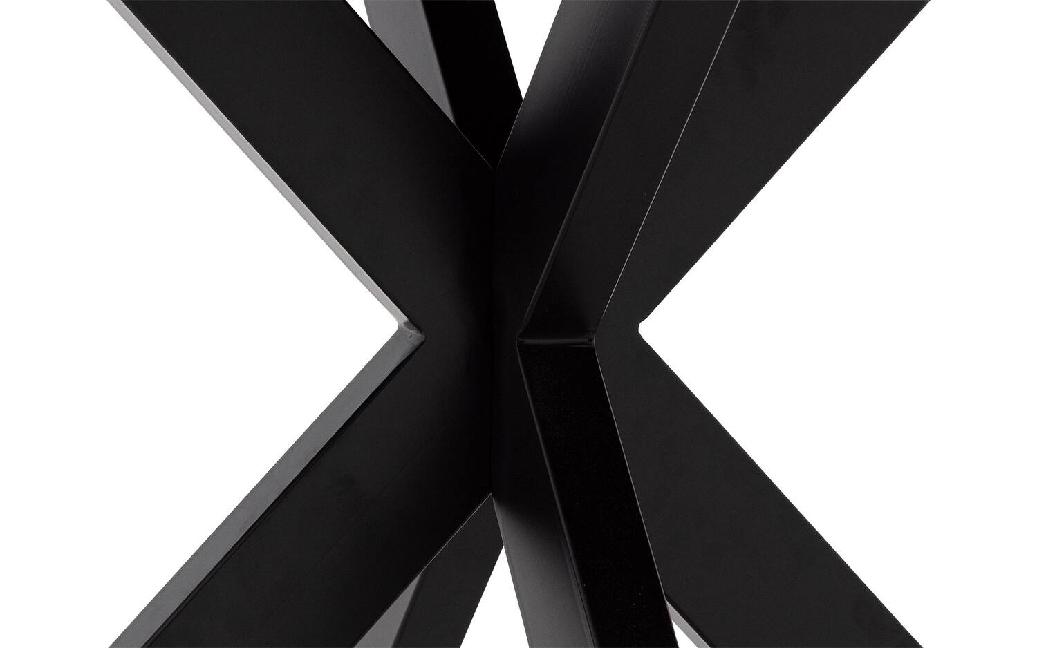 De kruispoot van zwart metaal is niet alleen stijlvol, maar ook bijzonder stevig. Door het slimme ontwerp heb je voldoende beenruimte rondom de tafel, wat het comfort verhoogt tijdens lange diners.