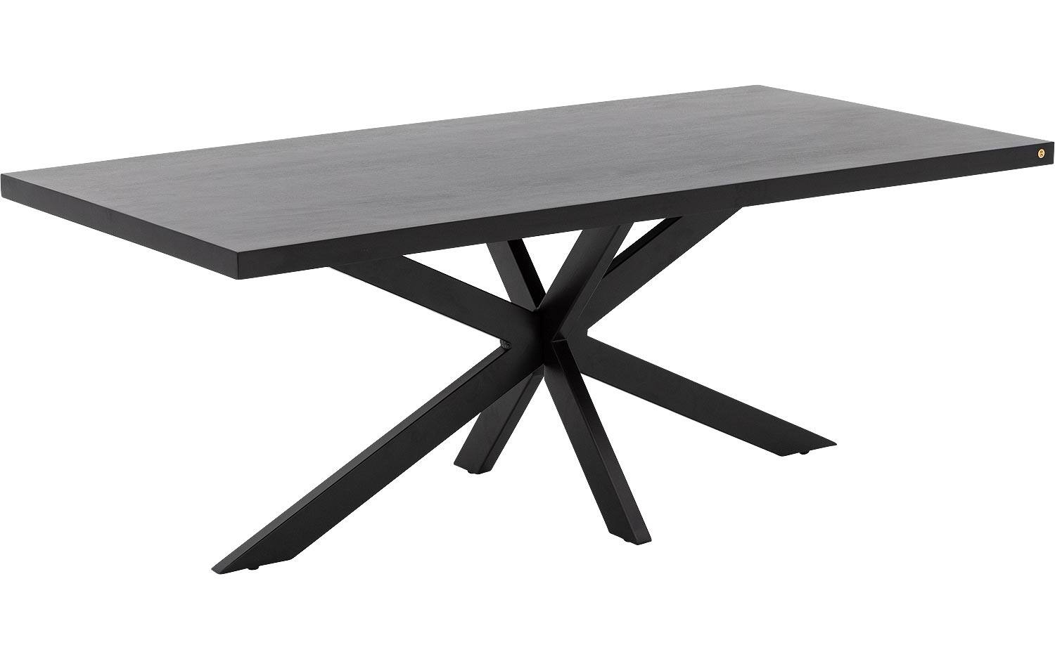 Het zwarte tafelblad is gemaakt van mangohout met een gelakte afwerking. Dit sterke Aziatische hardhout heeft een warme uitstraling en unieke tekening door natuurlijke kleurverschillen. De gelakte afwerking maakt de tafel onderhoudsvriendelijk en beschermt tegen dagelijks gebruik.