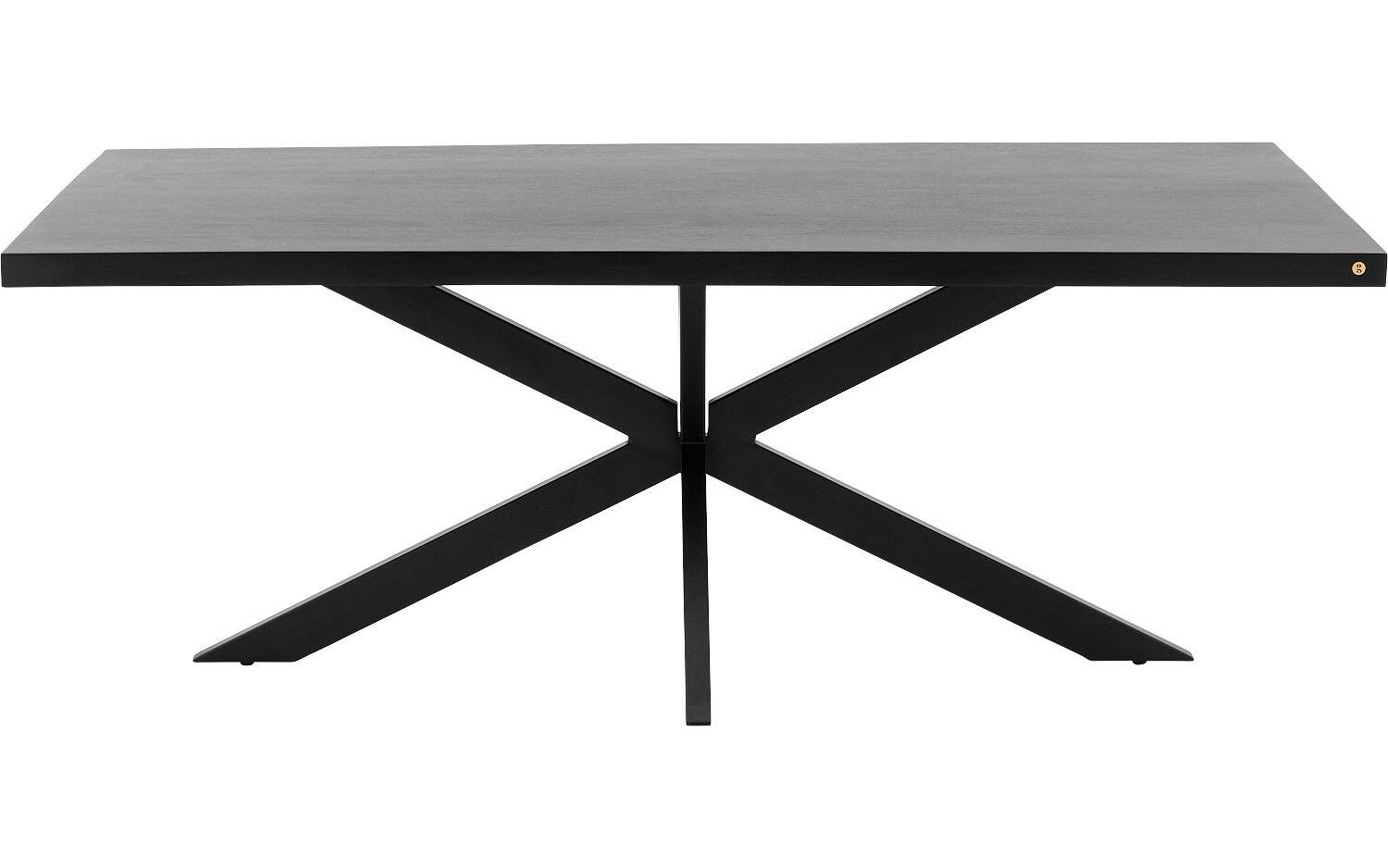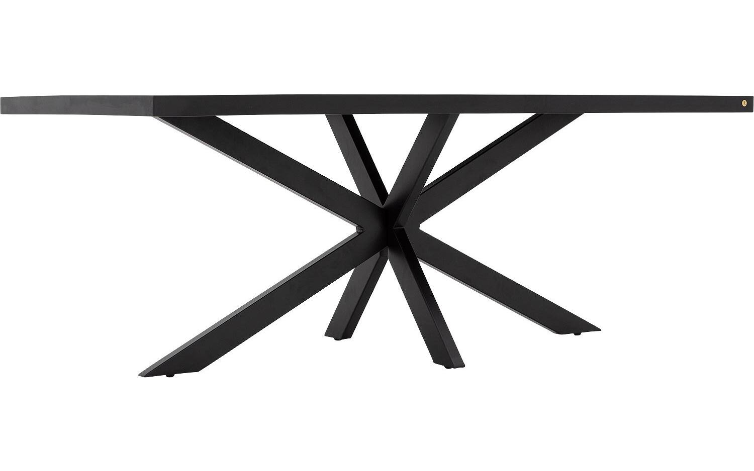 De kruispoot van zwart metaal zorgt voor een stabiele basis en industrieel statement. Door de slimme constructie heb je optimale beenruimte rondom de tafel, wat het comfort tijdens het dineren verhoogt.