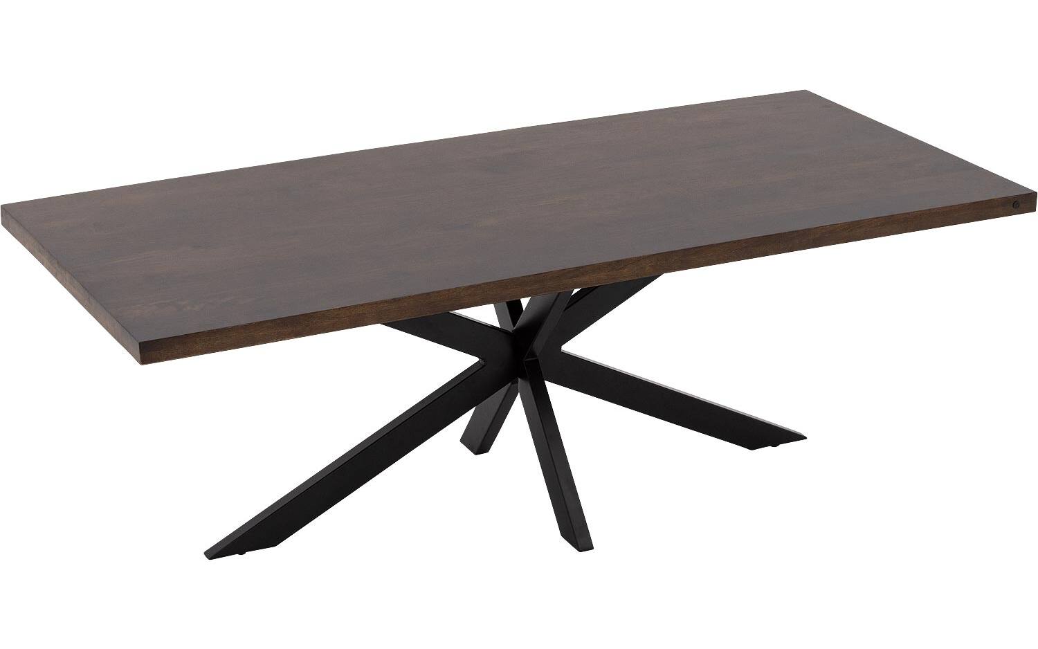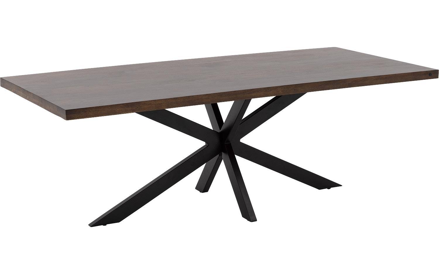 Eettafel Lecce heeft een strakke rechthoekige vorm die ruimte biedt aan 6 à 8 personen. Het warme mangohouten blad in notenkleur geeft de tafel een natuurlijke, klassieke uitstraling. De zwarte kruispoot zorgt voor een stoer industrieel accent dat mooi contrasteert met het hout.