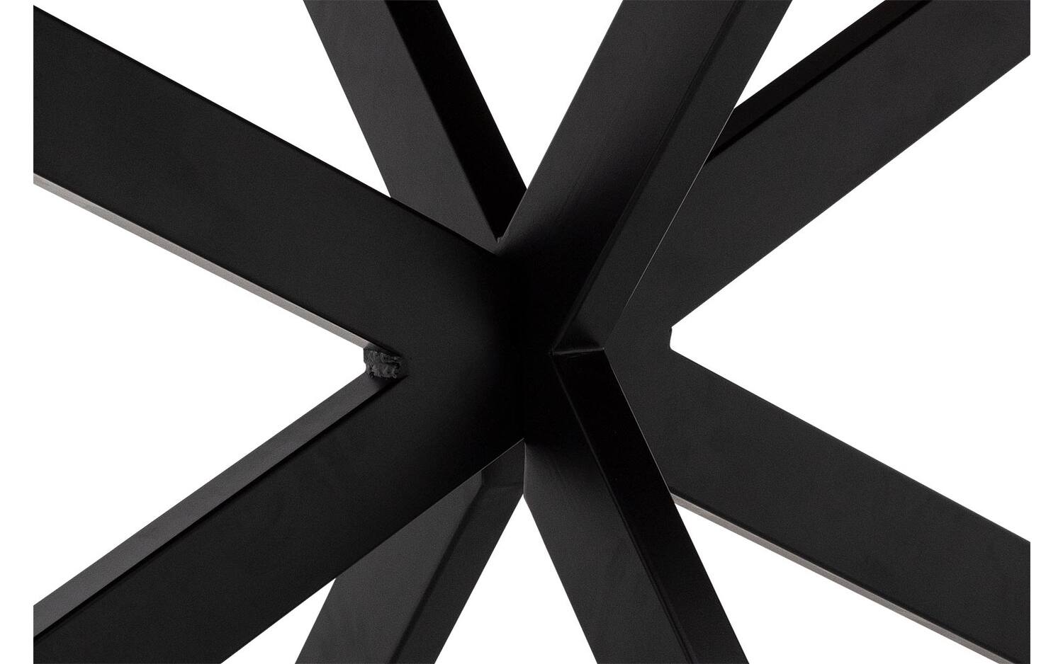 De kruispoot van zwart metaal met poedercoating geeft stabiliteit en zorgt voor veel beenruimte. Door de slimme constructie staat de tafel stevig en heeft iedereen comfortabel plaats aan tafel.