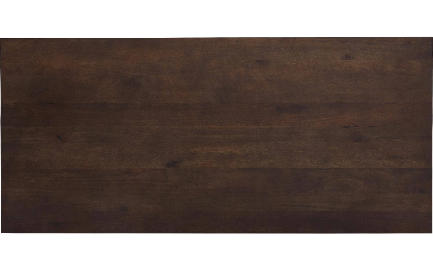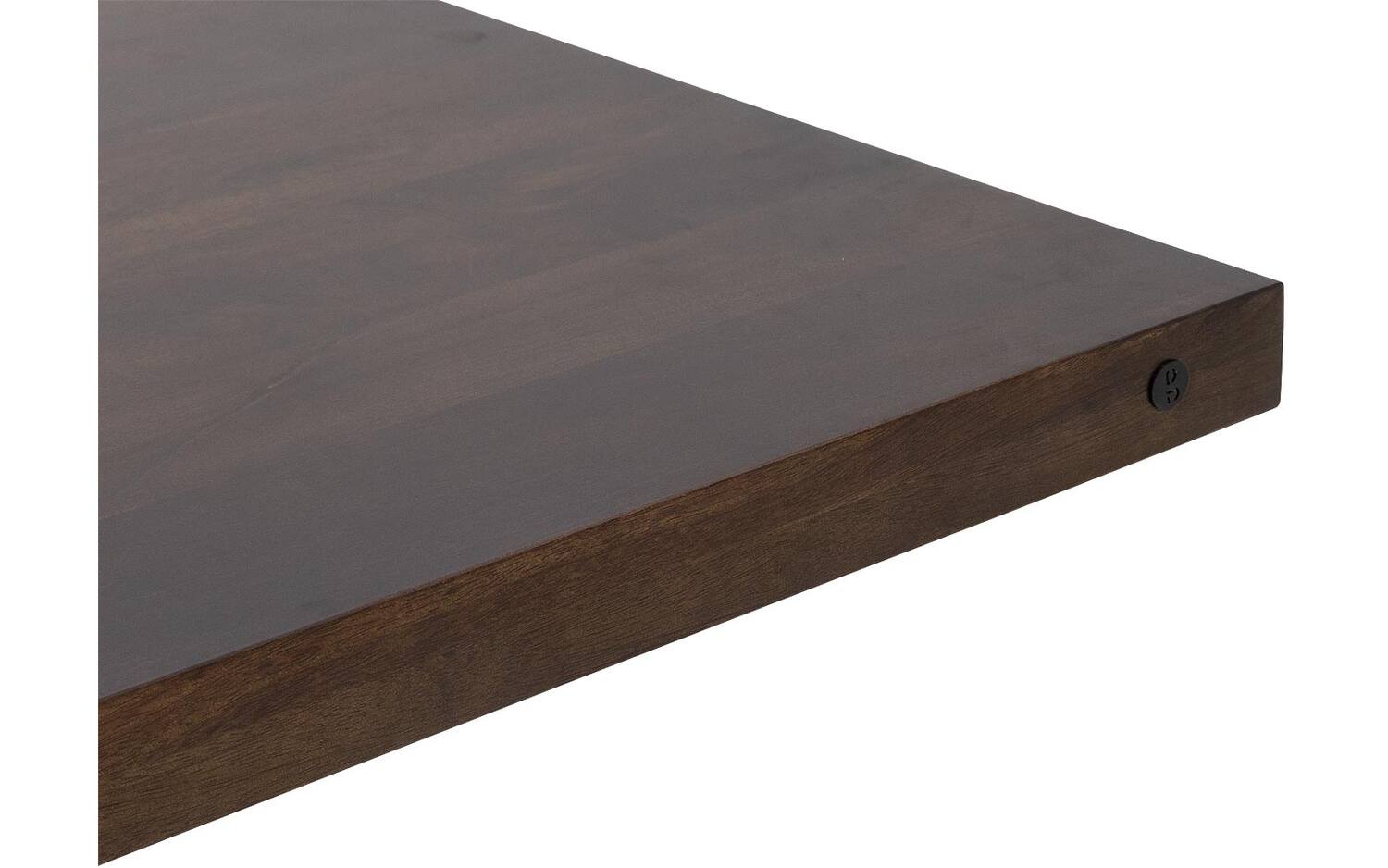 Het tafelblad van mangohout heeft een warme notenkleur en is voorzien van een beschermende laklaag. Deze afwerking maakt de tafel eenvoudig te onderhouden. Het natuurlijke hout heeft een mooie tekening die elk exemplaar uniek maakt.