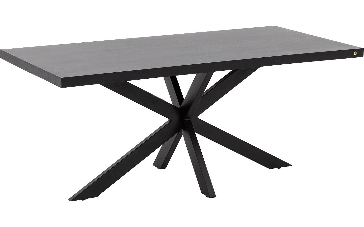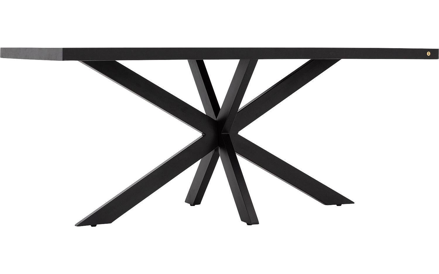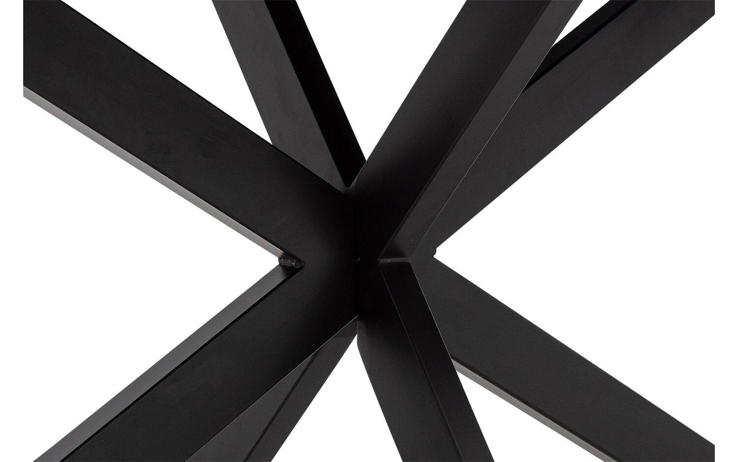 De kruispoot van zwart gepoedercoat staal zorgt voor een stoere basis én optimale stabiliteit. Door de slimme constructie heb je veel beenruimte aan tafel, wat het comfort verhoogt tijdens lange diners.