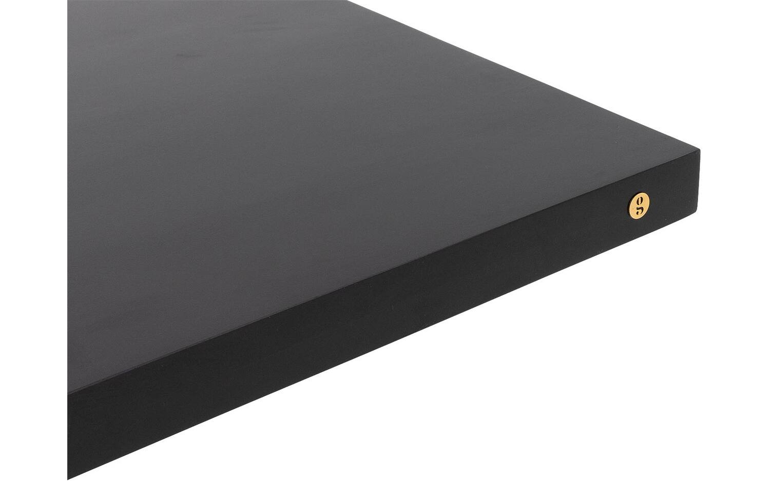 Het zwarte tafelblad is gemaakt van mangohout met een gelakte afwerking. Deze laklaag beschermt tegen vlekken en kringen, terwijl de natuurlijke houtstructuur zichtbaar blijft. Het Aziatische hardhout heeft een warme uitstraling met unieke kleurverschillen die elk meubel bijzonder maken.