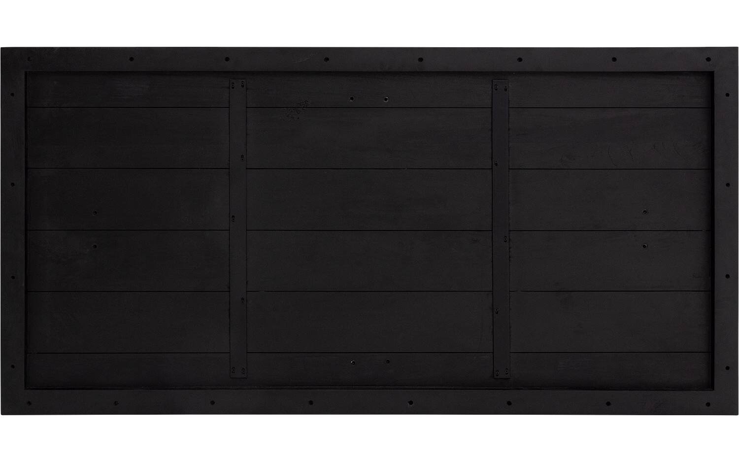 Eettafel Lecce heeft een rechthoekige vorm met een opvallende kruispoot van zwart metaal. Het gelakte mangohout in zwarte kleur geeft de tafel een strakke, industriële uitstraling met behoud van de natuurlijke warmte. Dankzij de royale afmetingen is deze tafel ideaal voor gezellige diners met familie of vrienden.