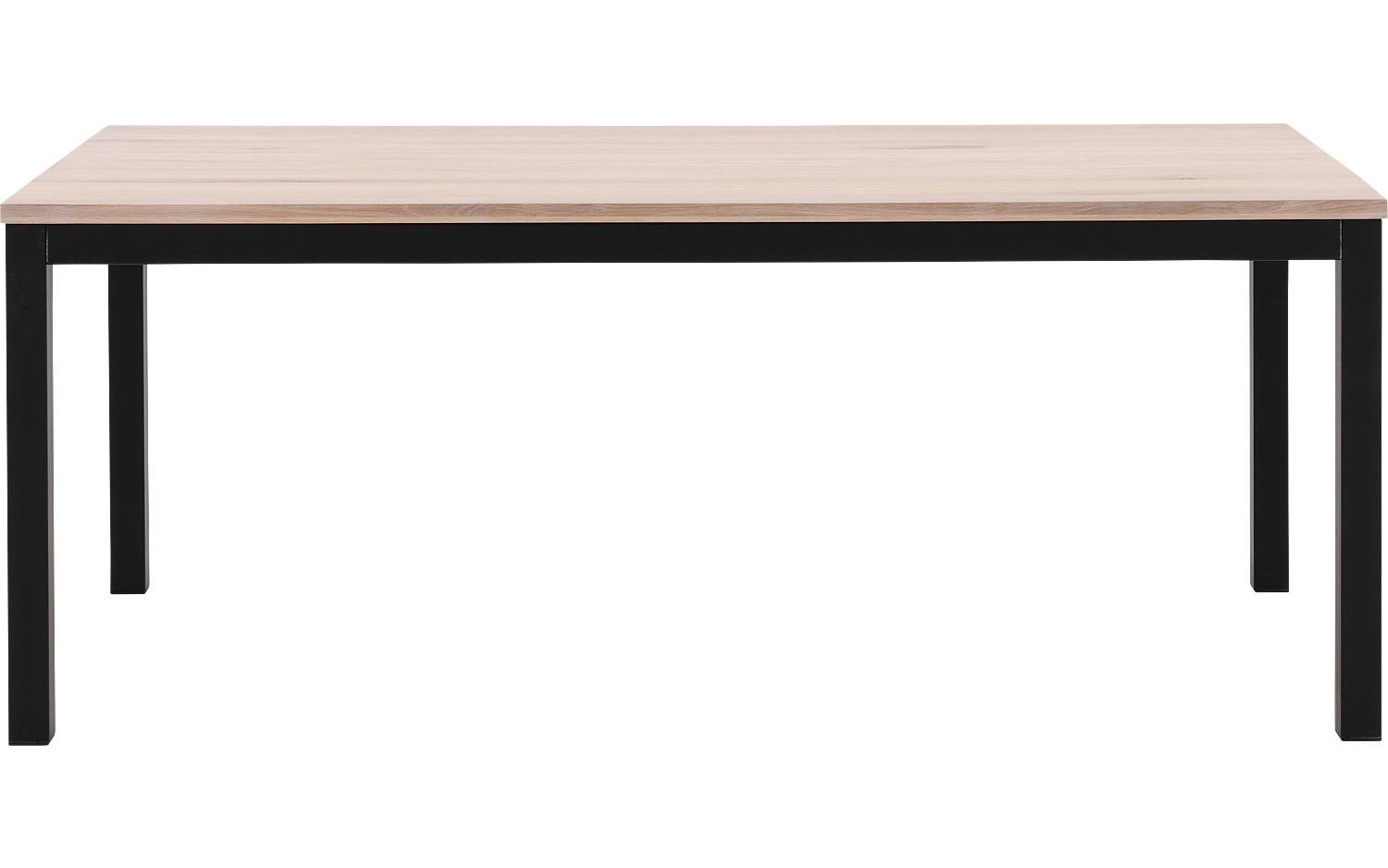 Eettafel Max heeft een strakke rechthoekige vorm die past bij verschillende interieurstijlen. Het zwarte metalen onderstel met vierkante poten geeft de tafel een industrieel karakter, terwijl het eikenhouten blad zorgt voor warmte en elegantie. Met 6 zitplaatsen is deze tafel ideaal voor gezellige diners met het hele gezin.