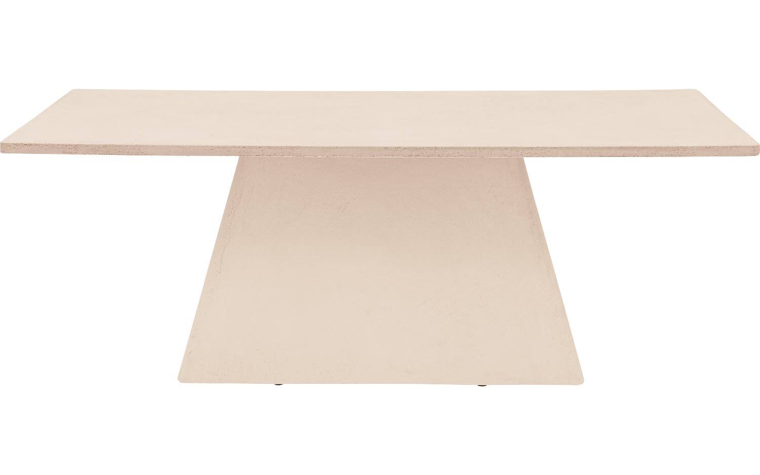 Het tafelblad heeft een dunne betonlaag over MDF met lichte putjes, barstjes en gevlamde structuur voor een authentieke betonlook. De rechte randafwerking houdt het design strak en modern. Door de blanke beschermlaag is de tafel goed bestand tegen vlekken.