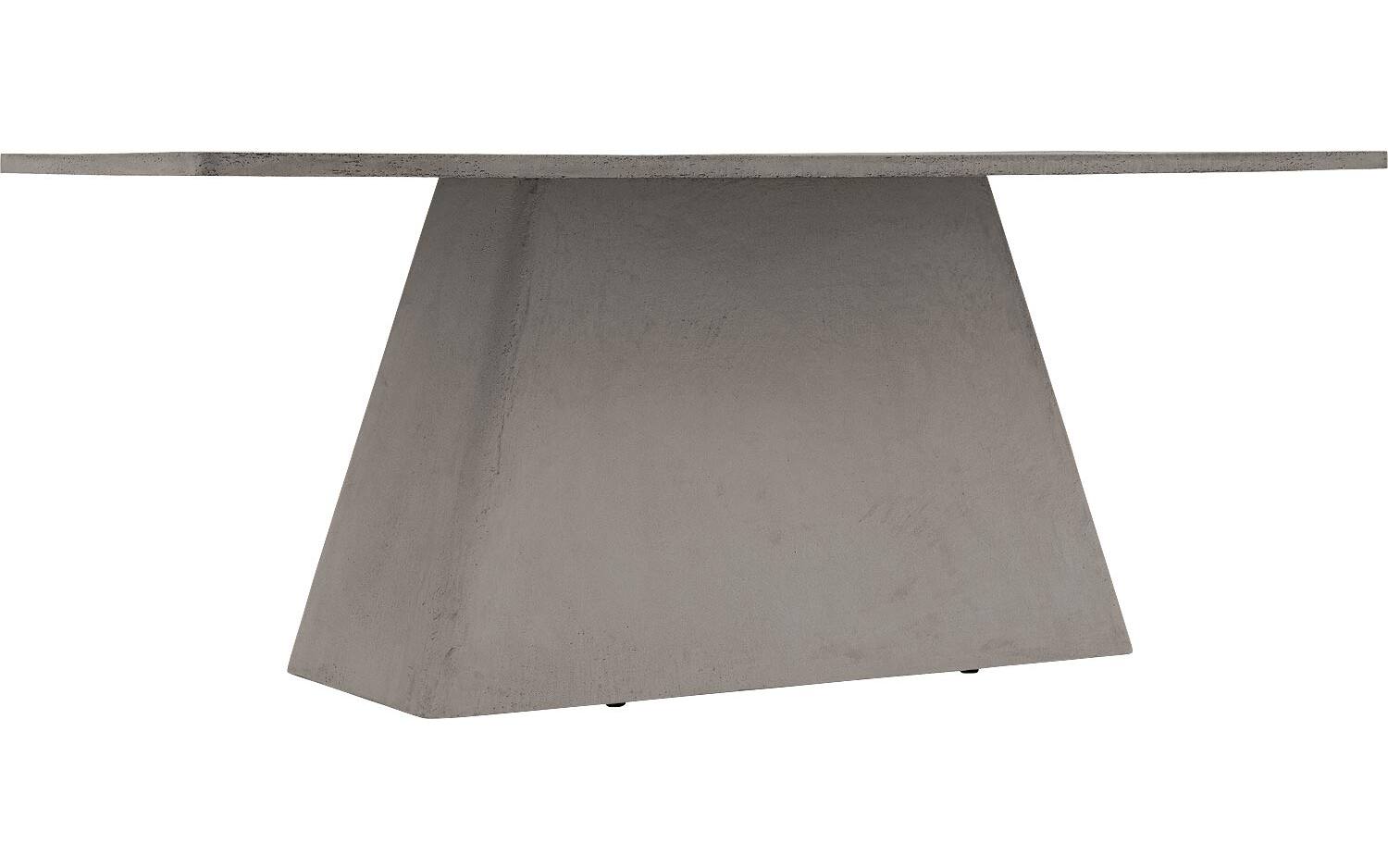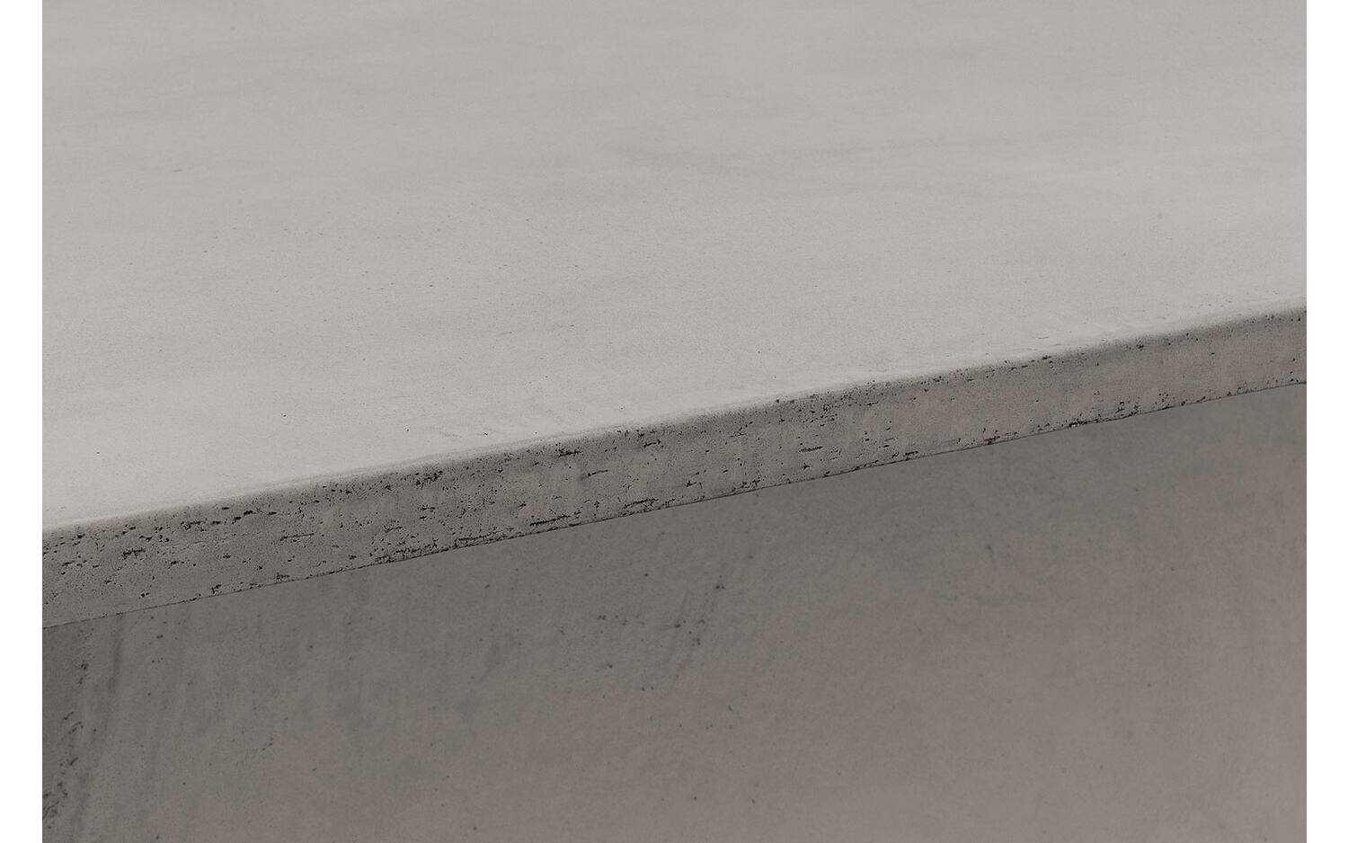 De rechthoekige poten zijn uitgevoerd in dezelfde betonkleur als het blad. Door de rechte randafwerking en de strakke lijnen krijgt Stone een tijdloze uitstraling die jarenlang mooi blijft.