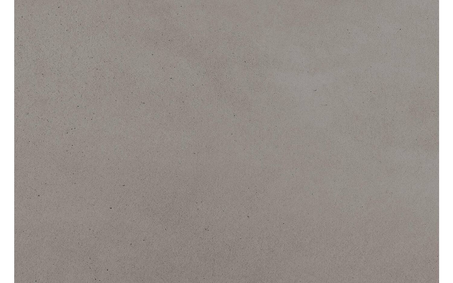 Het grijze tafelblad is gemaakt van MDF en afgewerkt met een dunne laag beton in de kleur Charquel. De betonlook heeft natuurlijke onregelmatigheden zoals kleine putjes en barstjes, wat de industriële uitstraling versterkt. Voor bescherming is het beton geïmpregneerd en voorzien van een blanke beschermlaag.