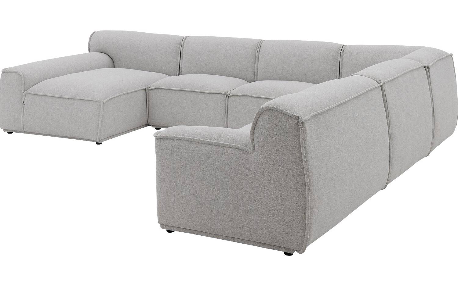 De bruine kleur maakt Sens veelzijdig en passend in verschillende interieurstijlen. De fijn geweven structuur van de stof geeft een luxe uitstraling die perfect past in een urban industrieel interieur. Door de kunststof poten krijgt deze hoekbank een robuuste en stoere look.