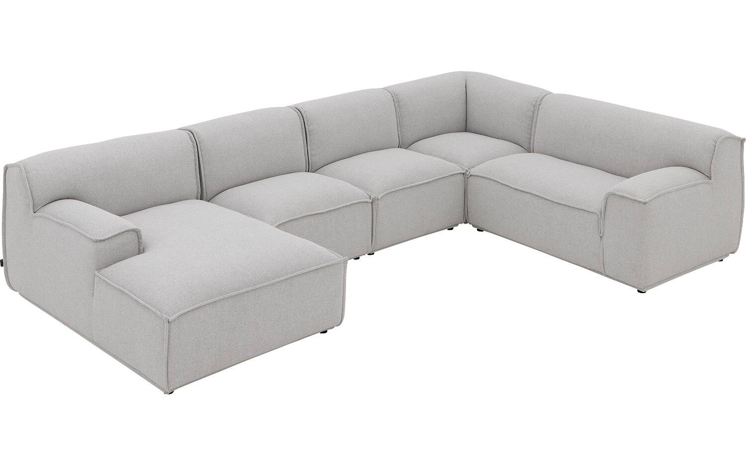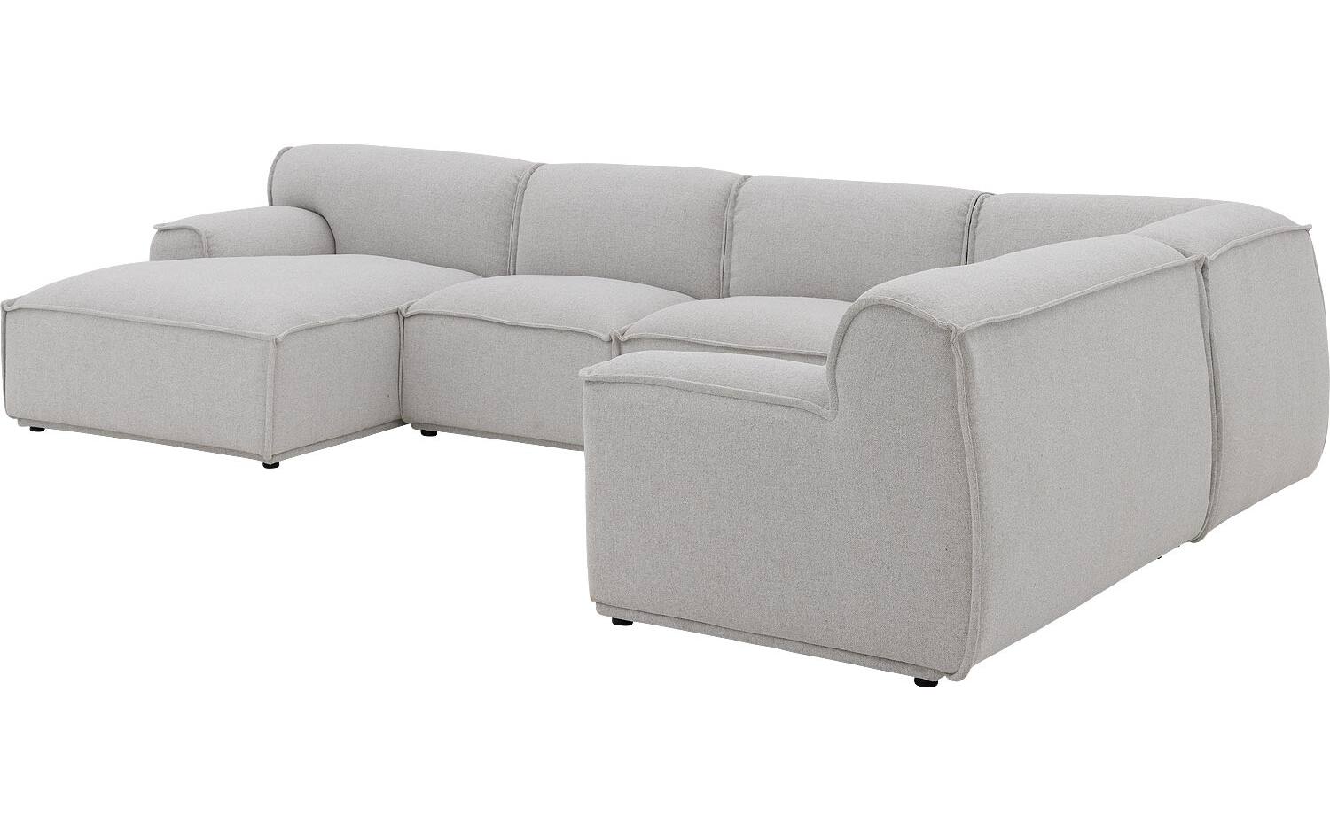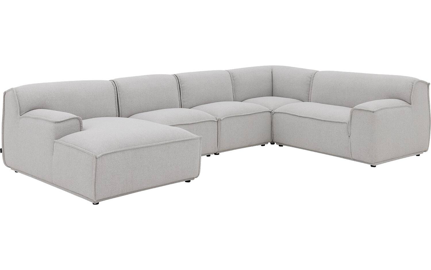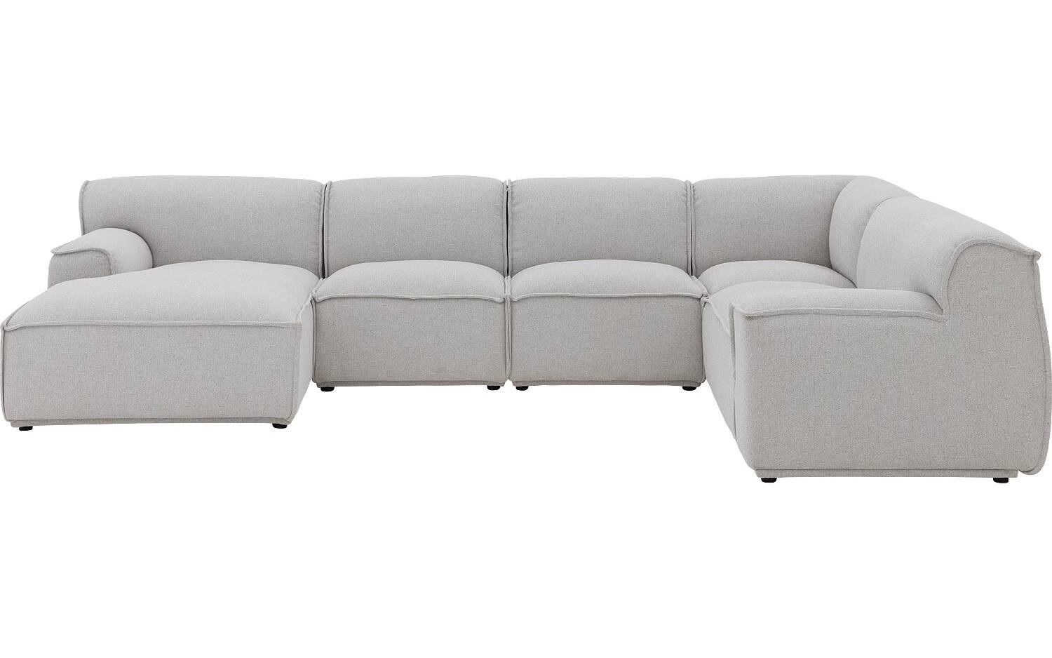 Met de fijn geweven bruine stof in de warme kleur shell heeft deze hoekbank een rustieke en natuurlijke uitstraling. De kunststof poten in het zwart geven Sens een stoere, urban industriële look die perfect past in een eigentijds interieur. De strakke lijnen en de bies als finishing touch maken het design helemaal compleet.