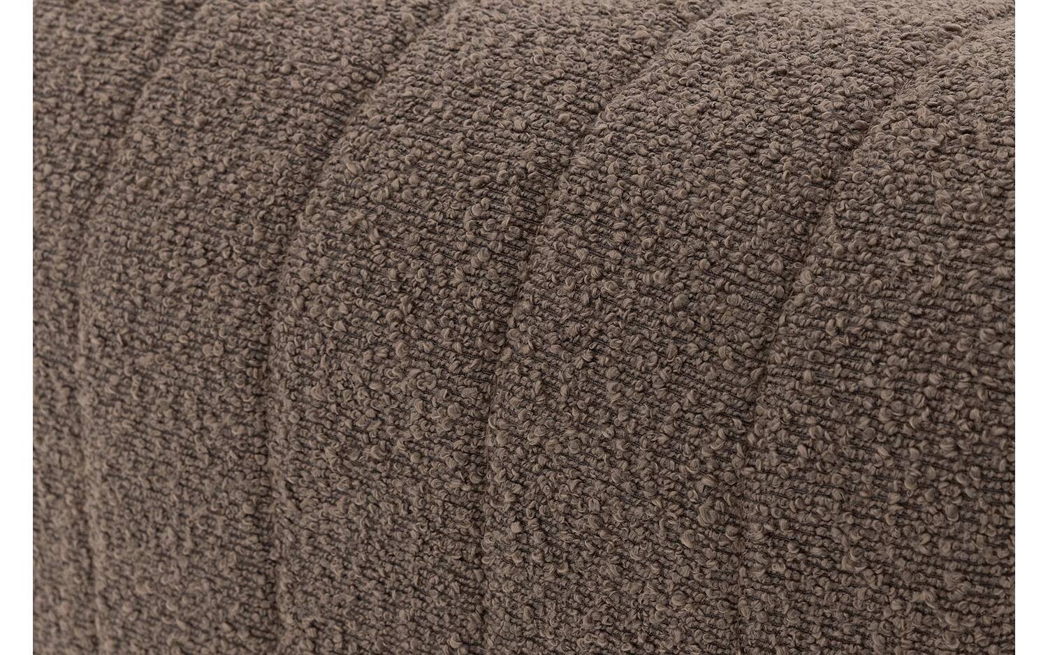 De donkerbruine boucle stof geeft poef Ebba een warme en trendy uitstraling. De speelse ronde hoeken zorgen voor een zachte, toegankelijke look die perfect past in moderne en eigentijdse interieurs. De boucle structuur voelt heerlijk zacht aan en geeft je woonkamer direct een knusse sfeer.