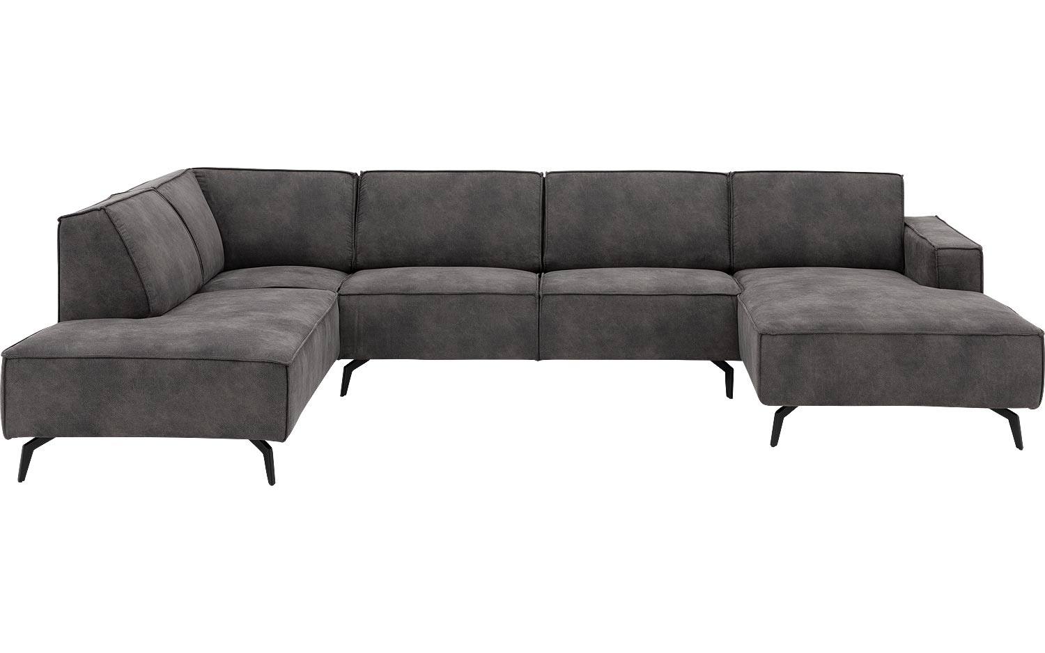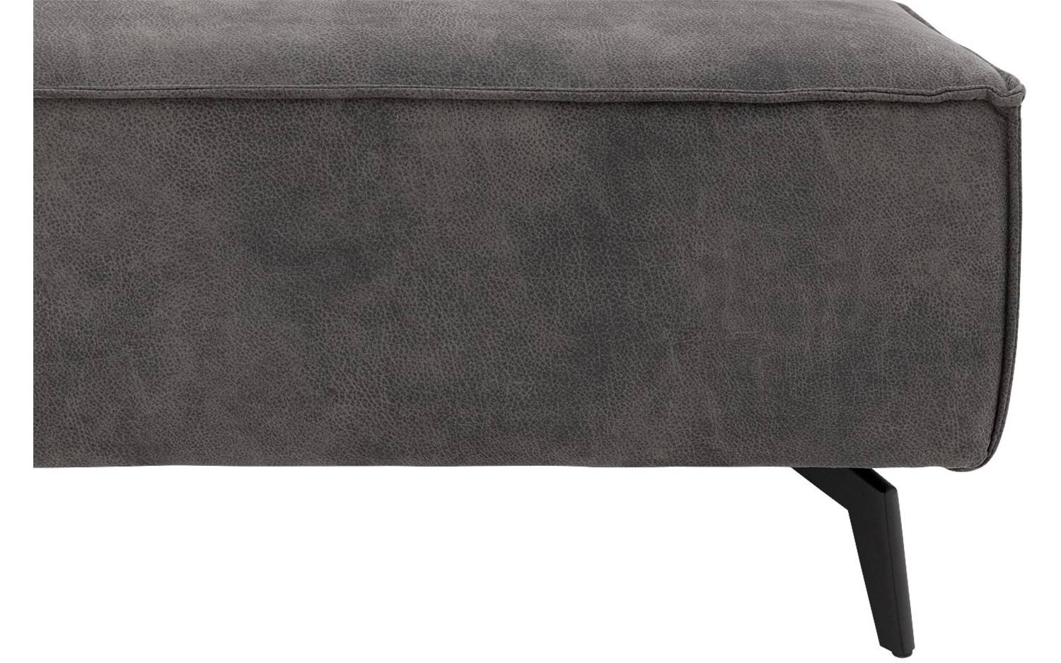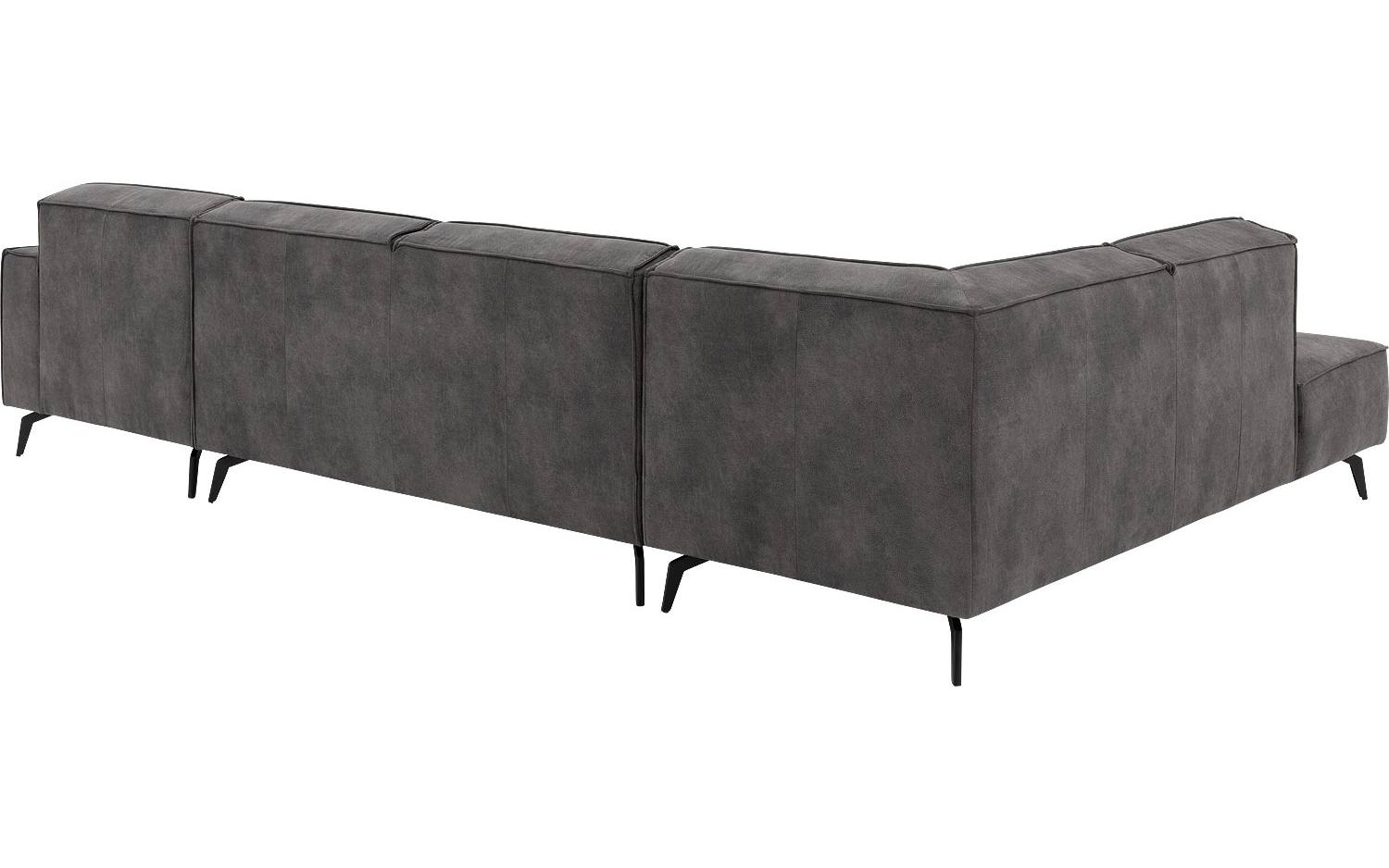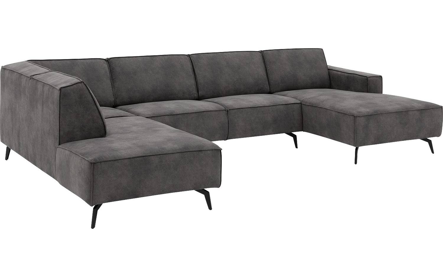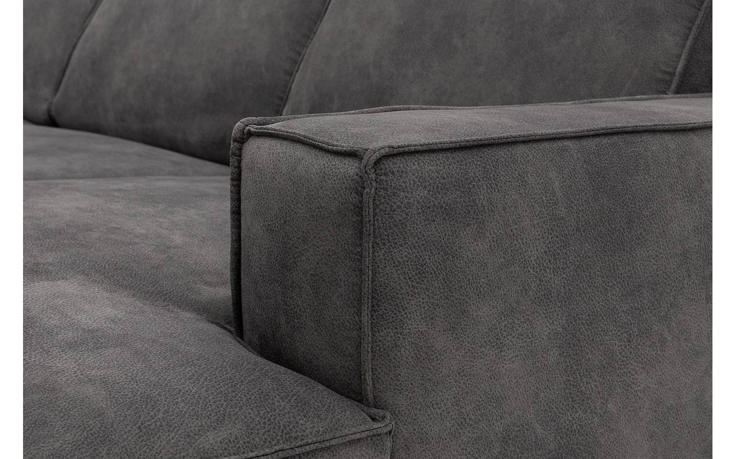 De stoere look van Hercules ontstaat door de opvallende stiknaden in de donkergrijze microvezelstof. De stof voelt heerlijk zacht aan en geeft de bank een warme uitstraling. De zwarte metalen poten met hun unieke vorm maken het eigentijdse design helemaal compleet.