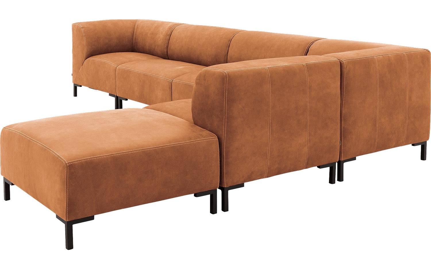 Stijlvolle details van deze cognac leren hoekbank