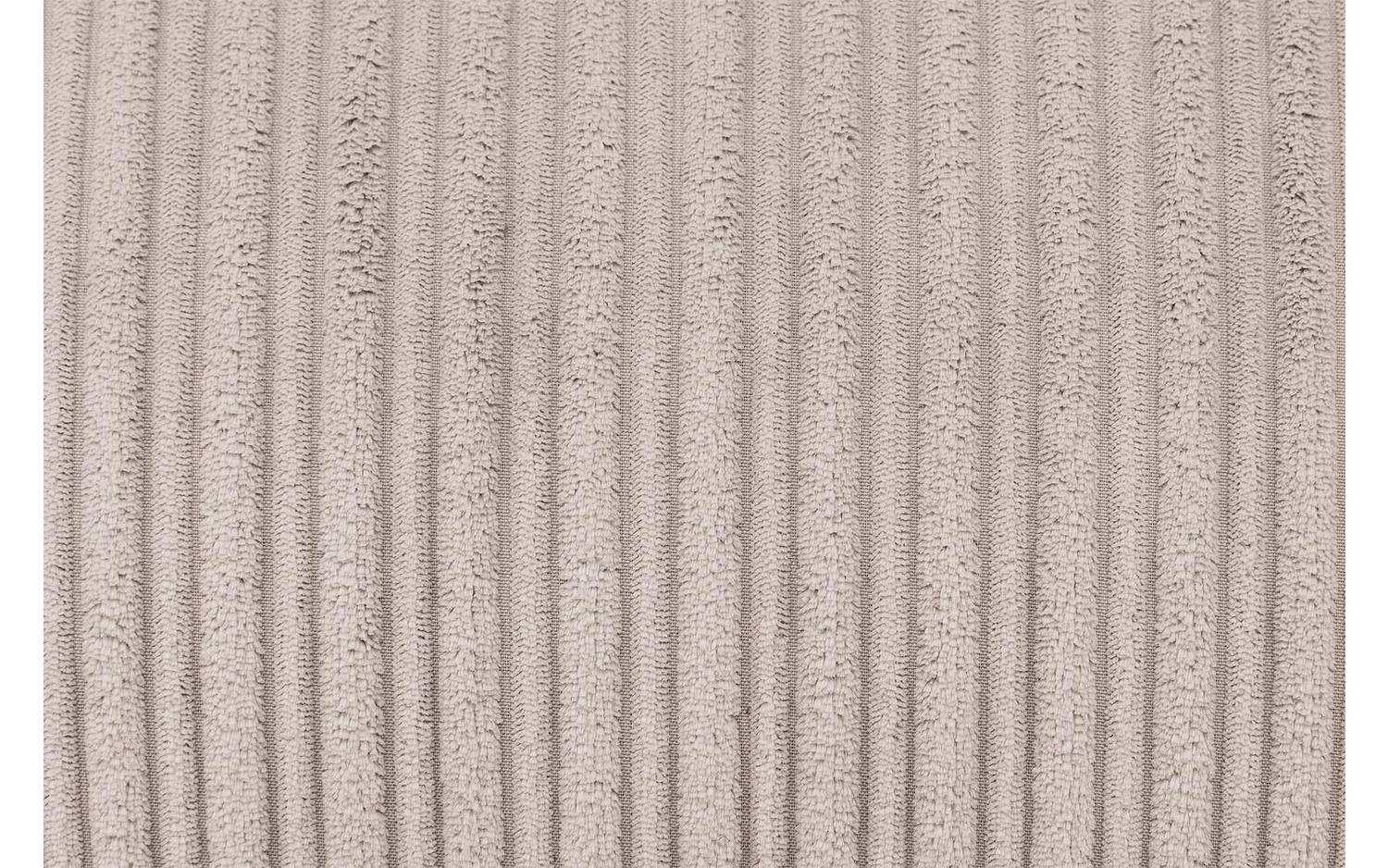 Ravenia is bekleed met een warme bruine ribstof in de kleur muskaat. De ribstructuur geeft de bank een luxe uitstraling en voelt aangenaam aan. De kunststof poten in zwart zorgen voor een subtiele basis onder dit mooie meubel.
