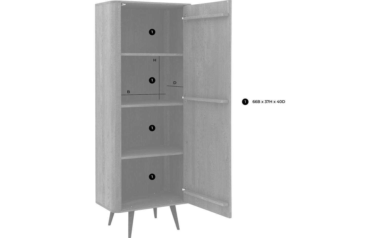 De vier gelijke vakken bieden praktische opbergruimte voor alles wat je netjes weggeborgen wilt hebben. Door het push-to-open systeem open je de deuren eenvoudig met een lichte druk - geen handgrepen nodig voor deze strakke look.