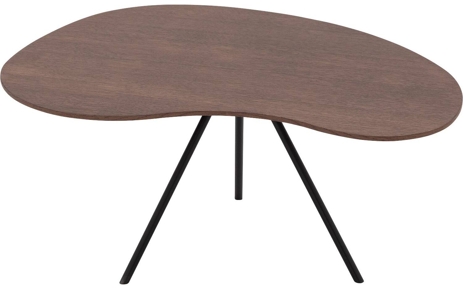 Salontafel Saya heeft een organische vorm die zachte, vloeiende lijnen combineert met natuurlijk eikenhout. De ronde zwarte metalen poot zorgt voor een moderne twist en geeft de tafel een eigentijds karakter. Perfect voor een hedendaags interieur met warme accenten.
