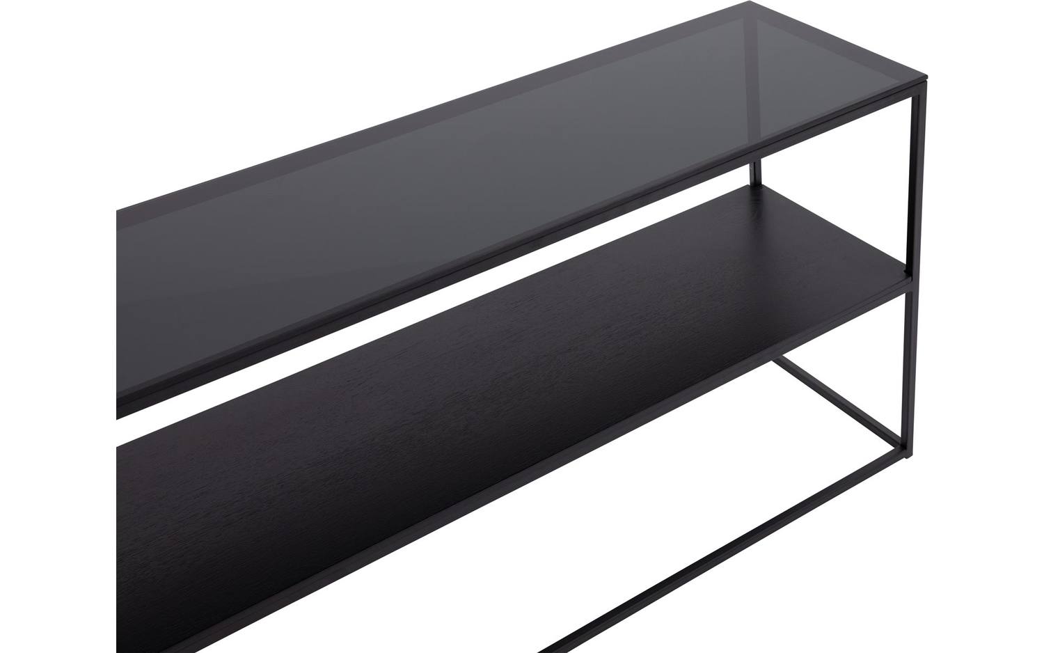 ...Hierdoor past deze eenvoudig bij diverse woonstijlen. De bovenste legplank is van zwart glas en de onderste van zwart hout. Met een sidetable maak je jouw interieur compleet én heb je wat extra opbergruimte, plaats deze bijvoorbeeld tegen een kale wand in huis om deze op te fleuren of juist in de keuken om kruiden en keukentools op te zetten.