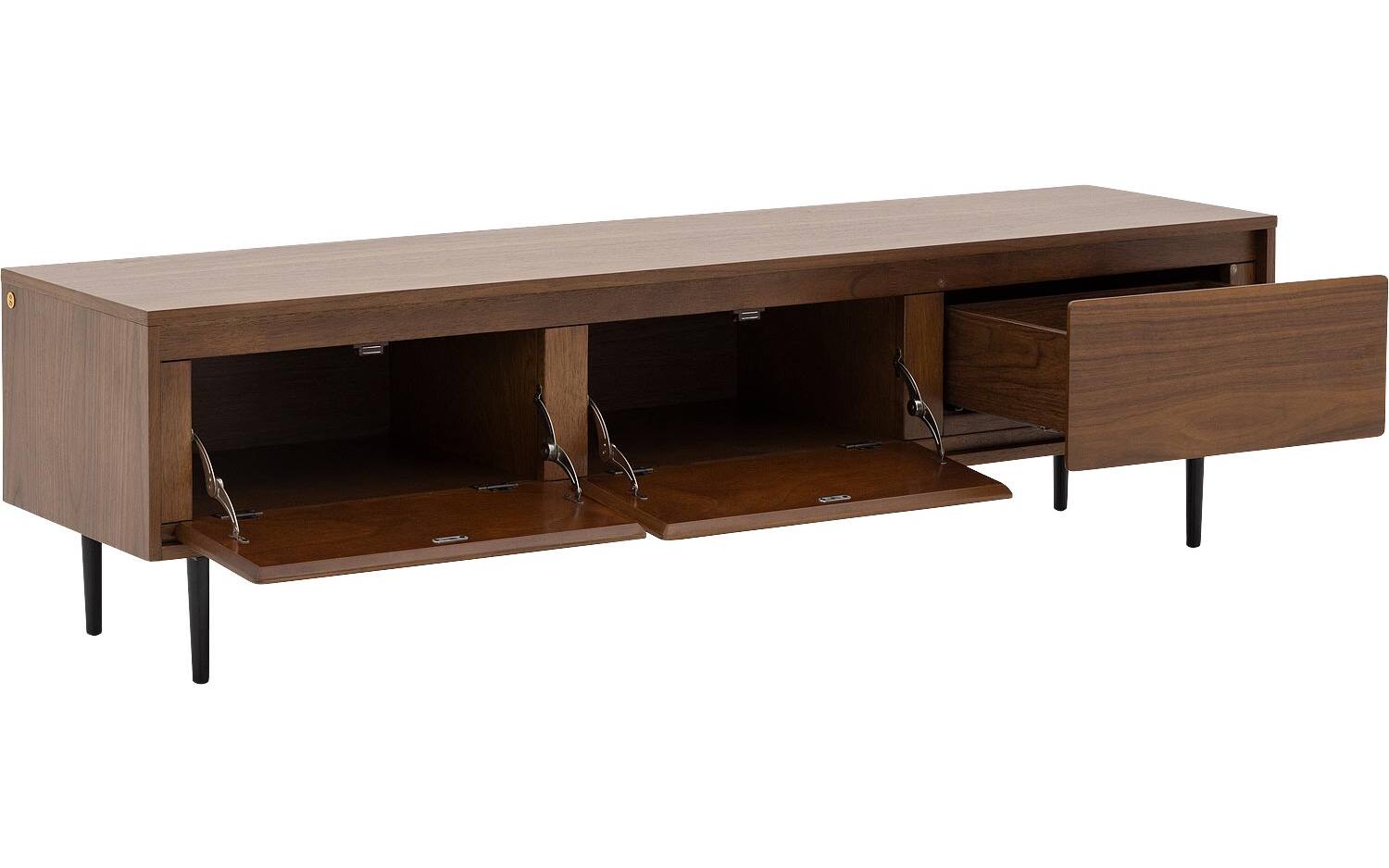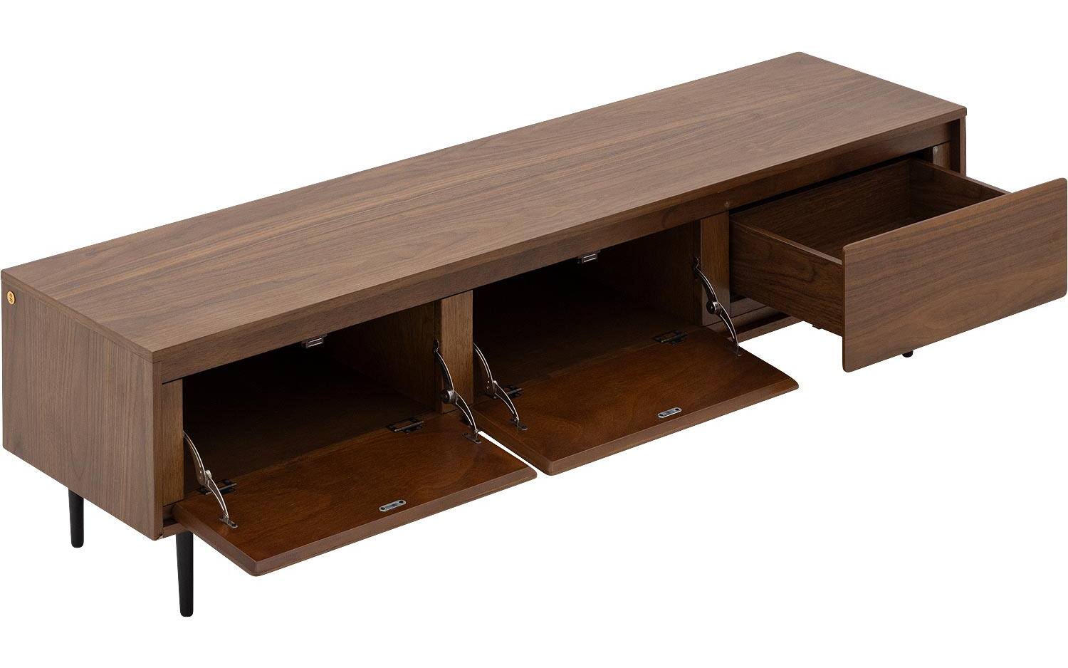 De twee kleppen en één lade bieden volop ruimte voor je tv-apparatuur, spelcomputers en accessoires. Het soft closing systeem zorgt ervoor dat deuren en lade altijd zacht sluiten, ook als je ze per ongeluk te hard dichtduwt. Zo blijft je meubel mooi en beschermd tegen harde klappen.