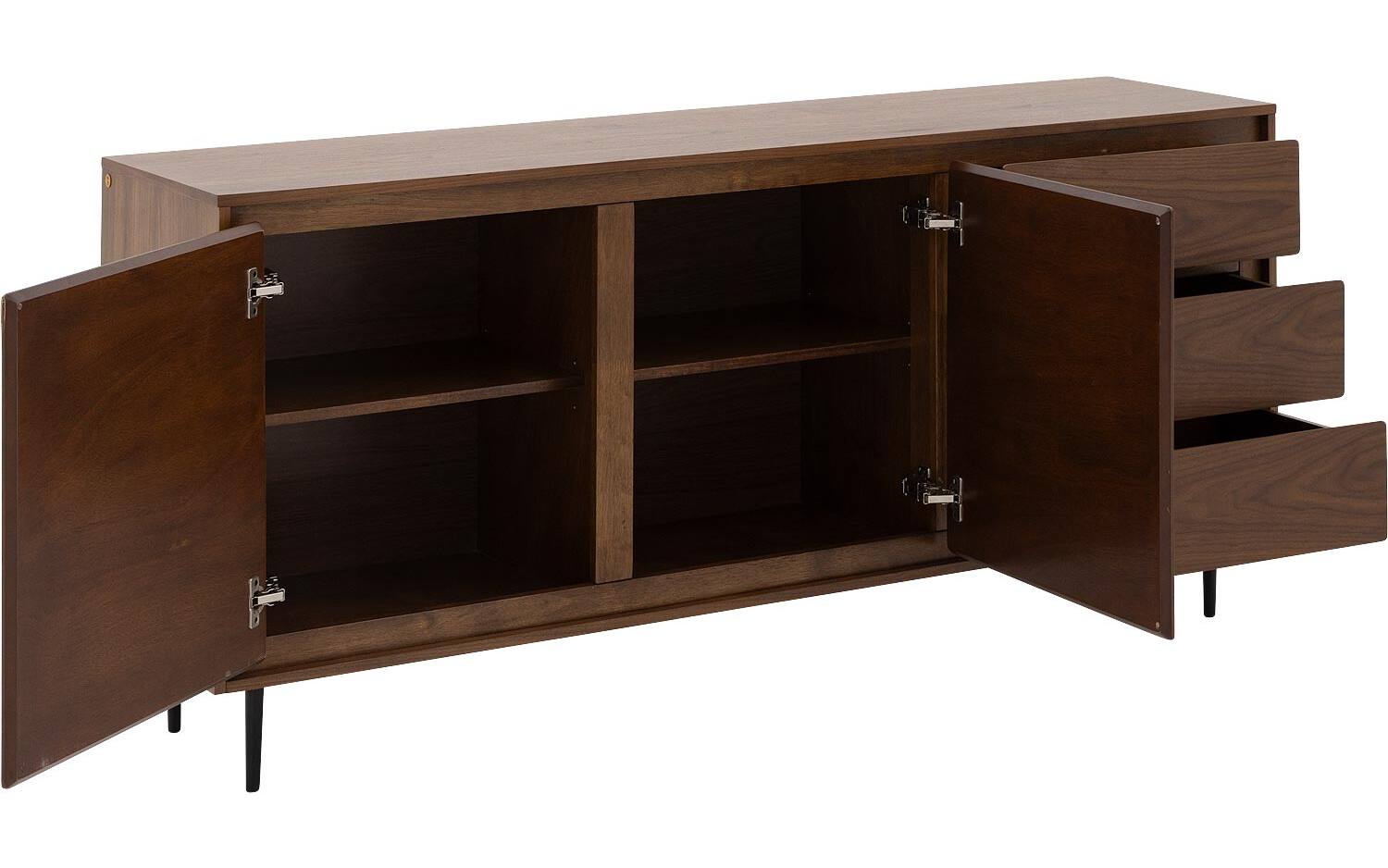 De warme notenkleur van het essenhoutfineer geeft dit dressoir een tijdloze elegantie. Met zijn royale afmetingen (180 x 80 x 40 cm) vormt Trani een prachtige basis voor je favoriete woonaccessoires. De strakke lijnen zonder handgrepen zorgen voor een moderne, opgeruimde uitstraling.